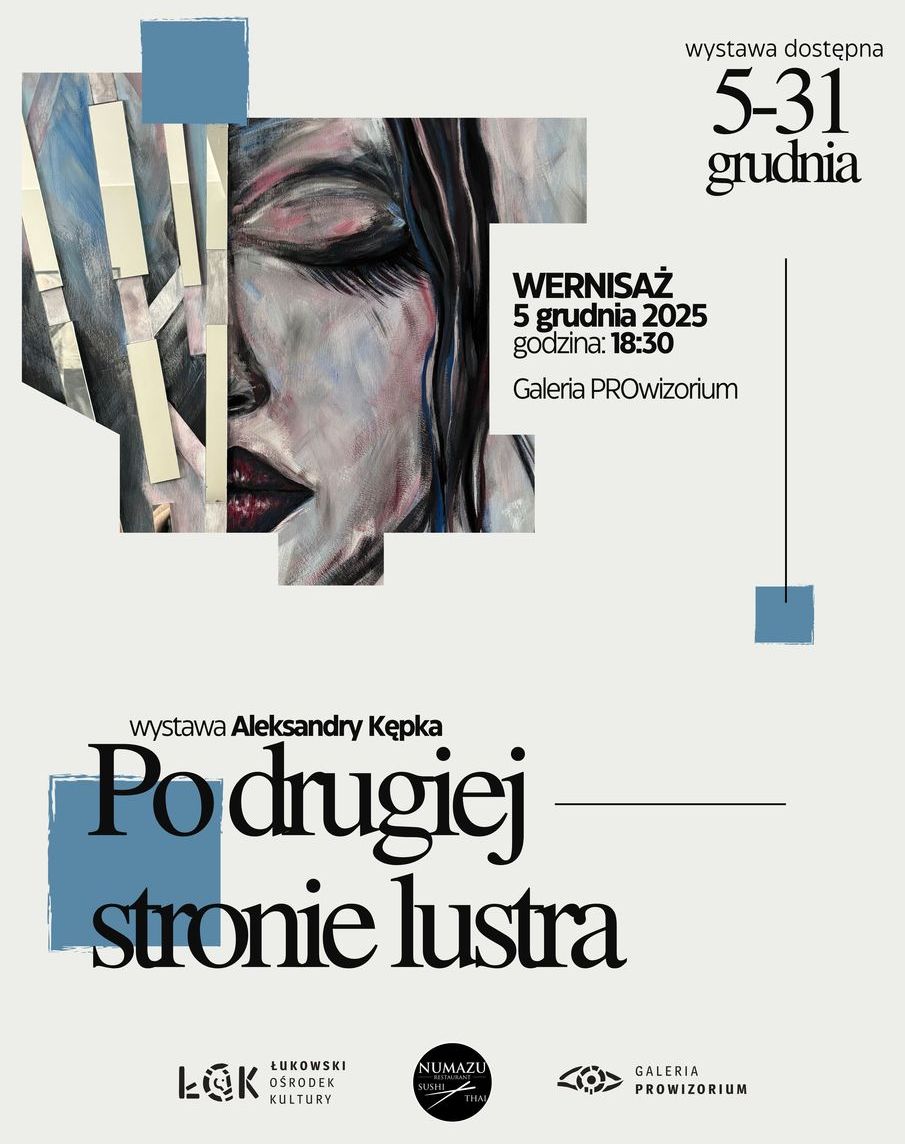 „Po drugiej stronie lustra” – to tytuł wystawy malarstwa łukowianki Aleksandry Kępki. Jej wernisaż odbędzie się już w najbliższy piątek, 5 grudnia w Galerii PROwizorium Łukowskiego Ośrodka Kultury.