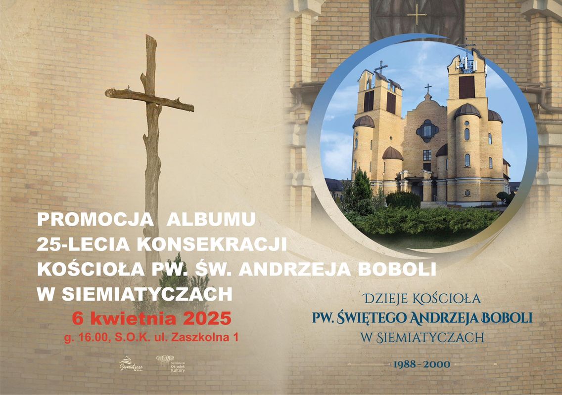 W ramach obchodów rocznicowych przygotowano album upamiętniający 25-lecie konsekracji kościoła. W niedzielę, 6 kwietnia odbędzie się promocja albumu. Spotkanie zaplanowano w Siemiatyckim Ośrodku Kultury (ul. Zaszkolna 1). Początek o godz. 16.00.Będzie to nie tylko okazją do zapoznania się z bogatą historią świątyni i jej znaczeniem dla lokalnej społeczności, ale także momentem wspólnego świętowania ćwierćwiecza od jej konsekracji. Album pt. „Dzieje Kościoła pw. Świętego Andrzeja Boboli w Siemiatyczach 1988–2000” ukazuje historię budowy i rozwoju świątyni, a także jej rolę w życiu duchowym mieszkańców Siemiatycz.