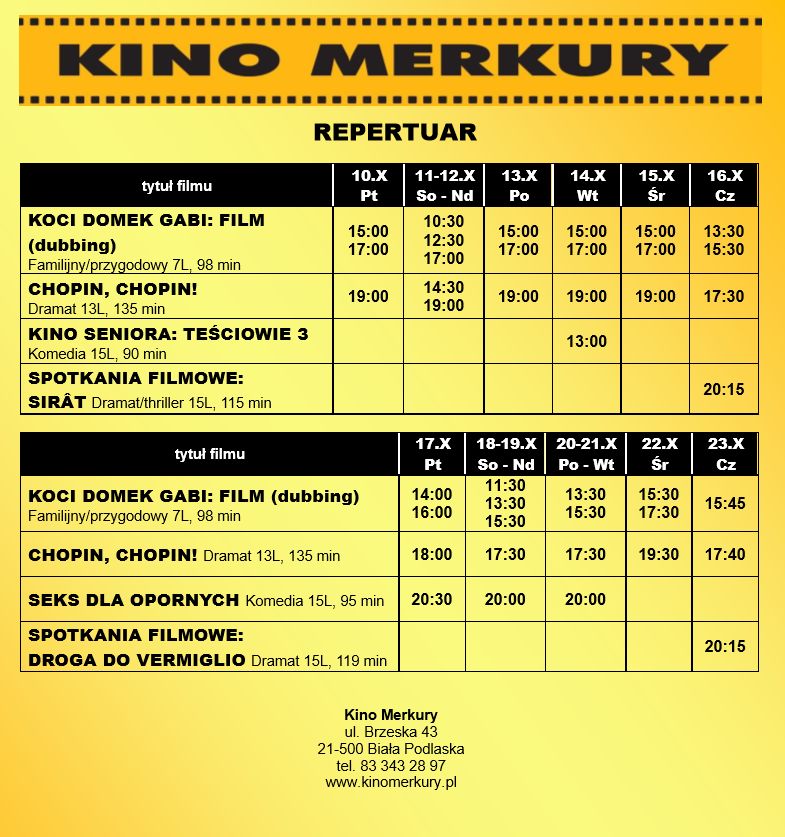 Zobaczcie jakie filmy będą wyświetlane w najbliższych dniach w Kinie MERKURY w Białej Podlaskiej.