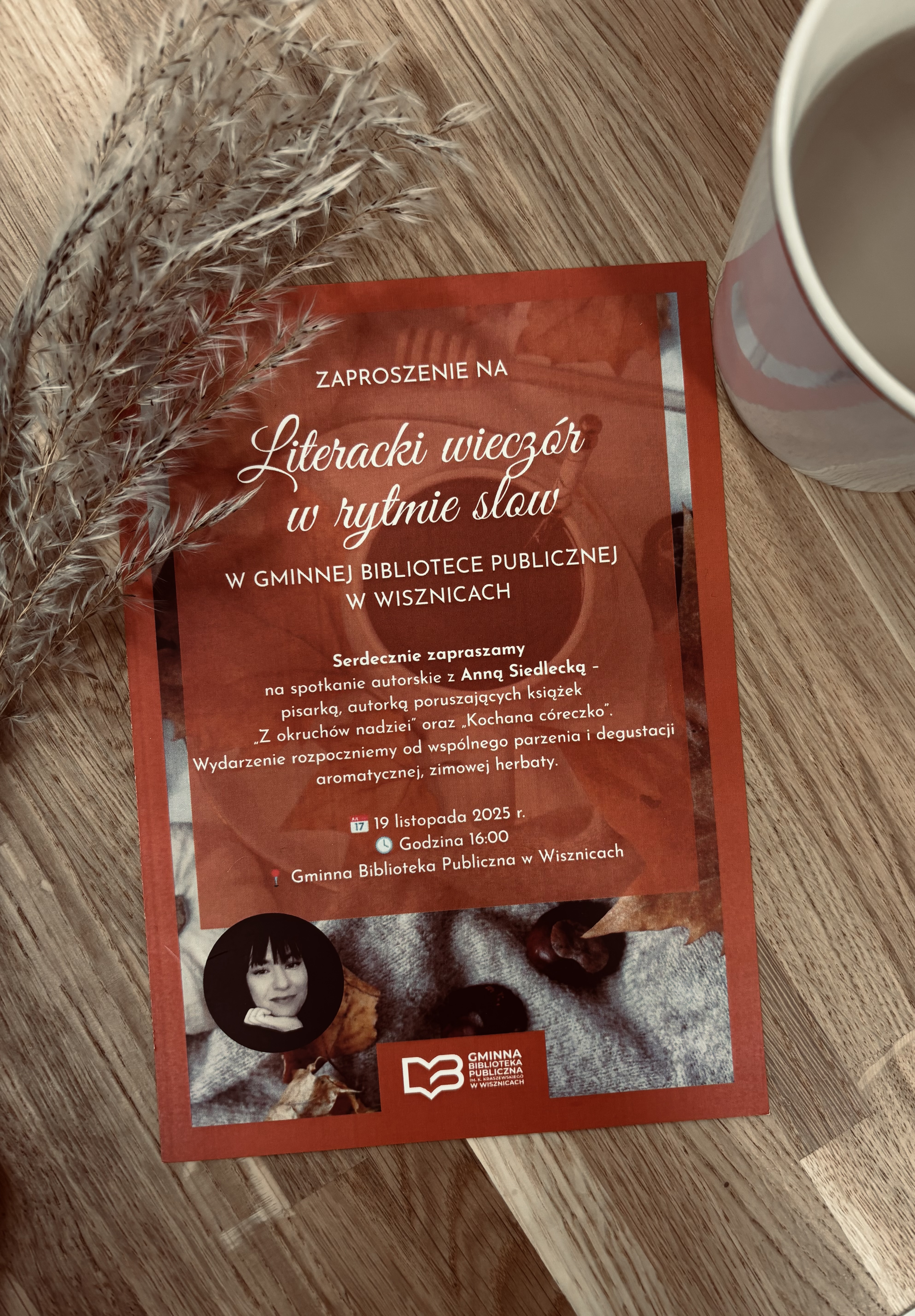 Spotkanie będzie niepowtarzalną okazją do rozmowy z autorką, poznania kulis powstawania jej książek oraz refleksji nad tematami, które porusza w swojej twórczości – pełnej emocji, wrażliwości i ludzkich historii.Wcześniej organizatorzy zapraszają na wspólne parzenie i degustację aromatycznej, zimowej herbaty – doskonałej towarzyszki listopadowych wieczorów.