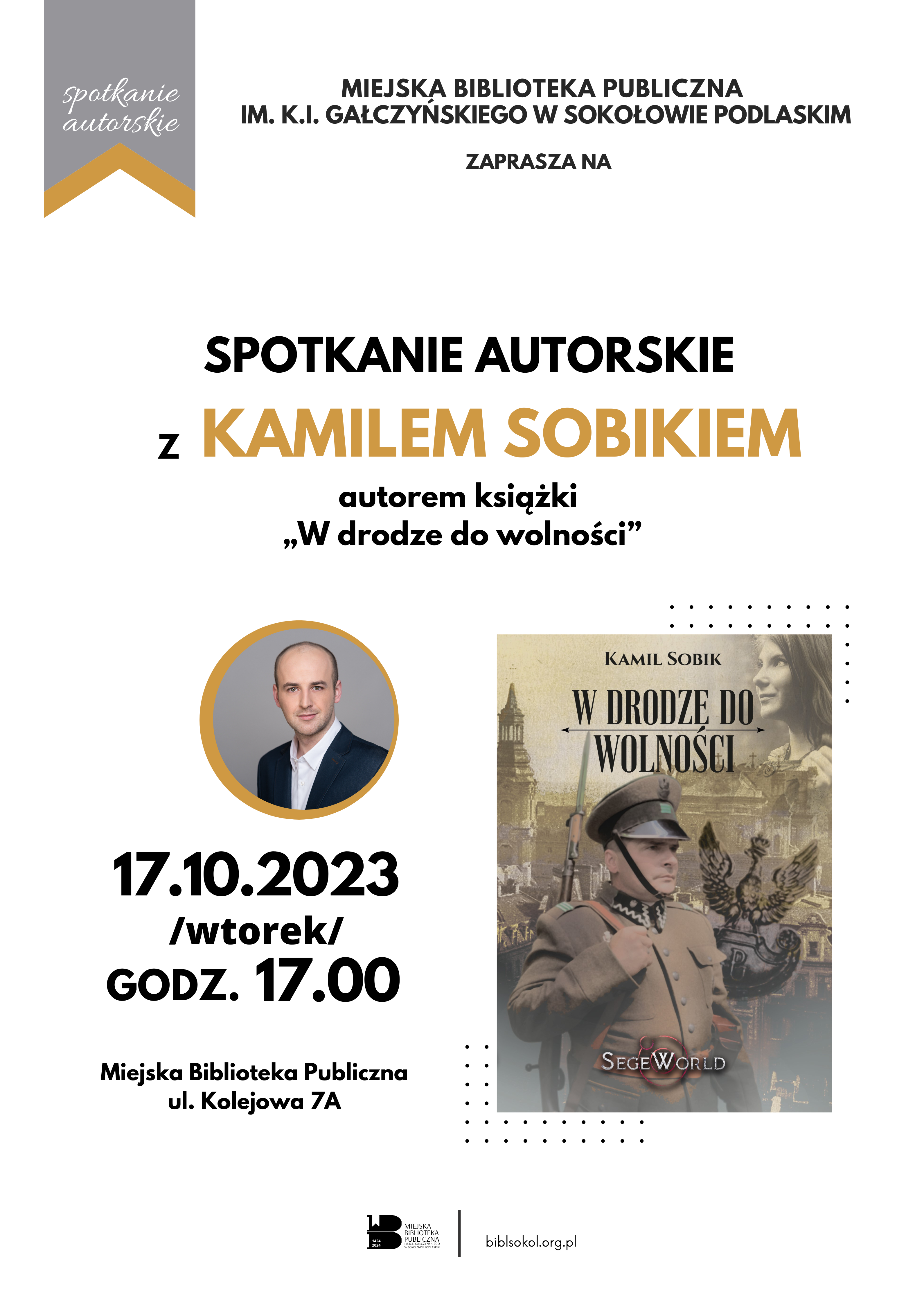 We wtorek, 17 października w Miejskiej Bibliotece Publicznej w Sokołowie Podlaskim, odbędzie się spotkanie autorskie z pisarzem Kamilem Sobikiem, autorek książki "W drodze do wolności".
