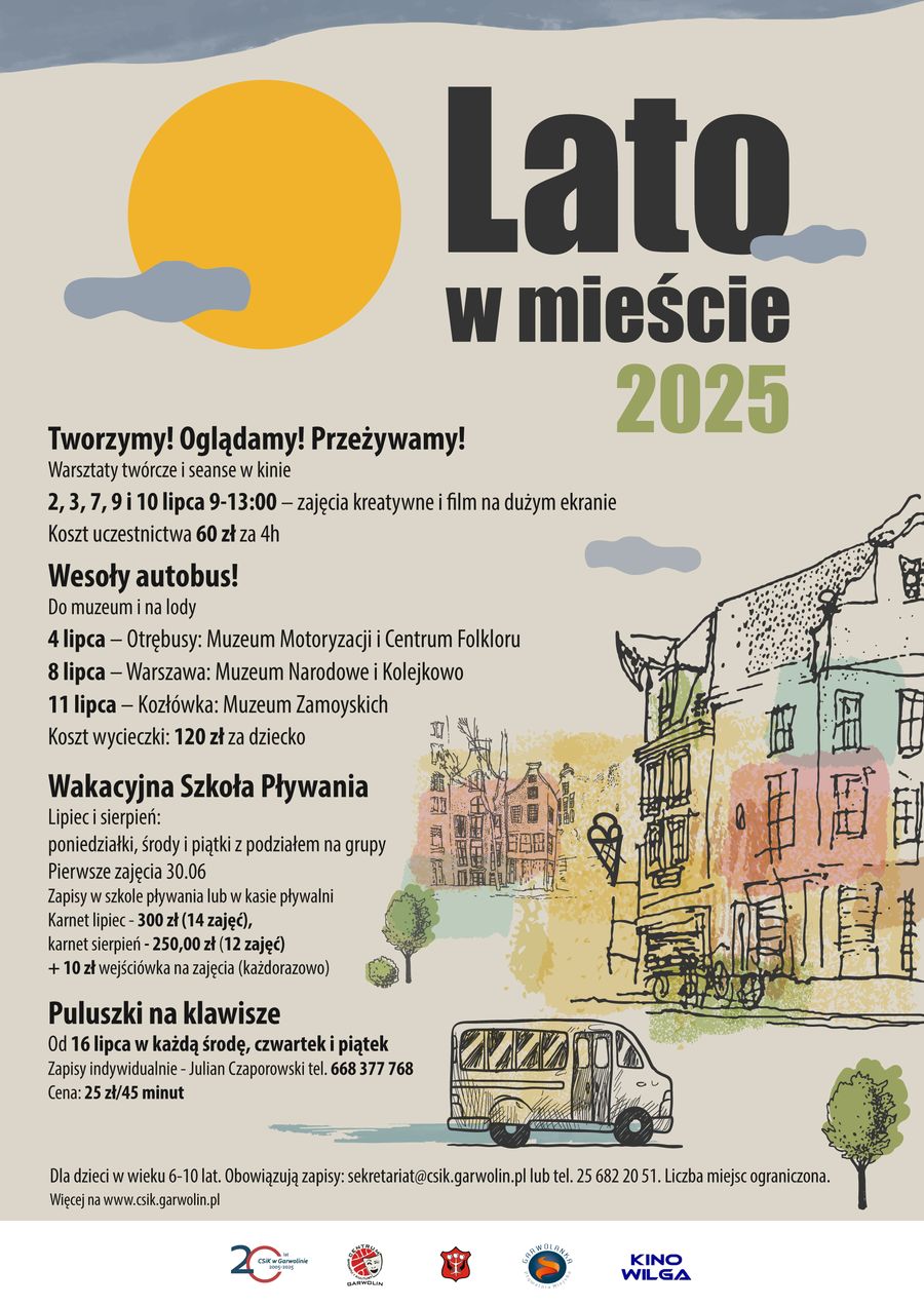 W wybrane dni lipca Centrum Sportu i Kultury zaprasza na 4-godzinny blok zajęć. W ramach spotkania będą prowadzone warsztaty ceramiczne. Będzie można lepić, wałkować, a nawet spróbować toczyć na kole. Zielony ogród będzie miejscem zabaw ruchowych i gier zespołowych tak, by dać upust dziecięcej energii. Znajdzie się także czas na zabawy plastyczne, łamigłówki i kreatywne warsztaty. Każdego dnia będzie też inny seans filmowy. Dzieci obejrzą m.in. ”Elio”, „HitPig” i „Kicię Kocię”. Obowiązkowo z popcornem. Koszt jednego spotkania to 60 zł od dziecka. (w tym bilet na seans).Wesoły autobus do muzeum i na lody