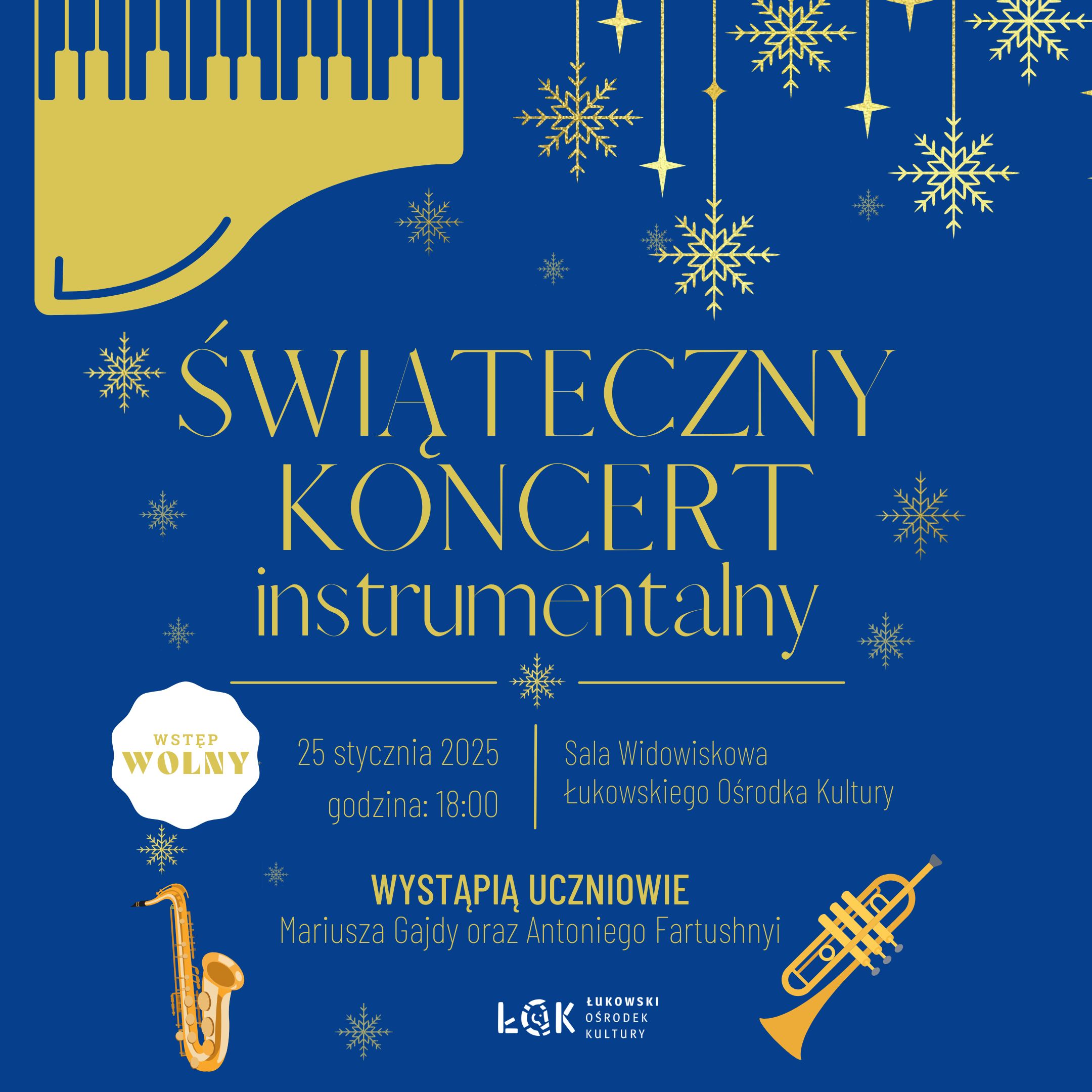 - To będzie piękny popis umiejętności instrumentalnych. Uczniowie kształcący się w murach Łukowskiego Ośrodka Kultury zaprezentują swój ostatni dorobek artystyczny w świątecznym repertuarze. Wszyscy wykonawcy rozwijają się na co dzień podczas zajęć prowadzonych przez naszych instrumentalnych mistrzów: Mariusza Gajdy i Antona Fartushnyi - zapewniają organizatorzy.Na scenie usłyszymy instrumenty dęte i klawiszowe. Koncert odbędzie się w sobotę, 25 stycznia o godz. 18:00 w Sali Widowiskowej Łukowskiego Ośrodka Kultury. Wstęp wolny.