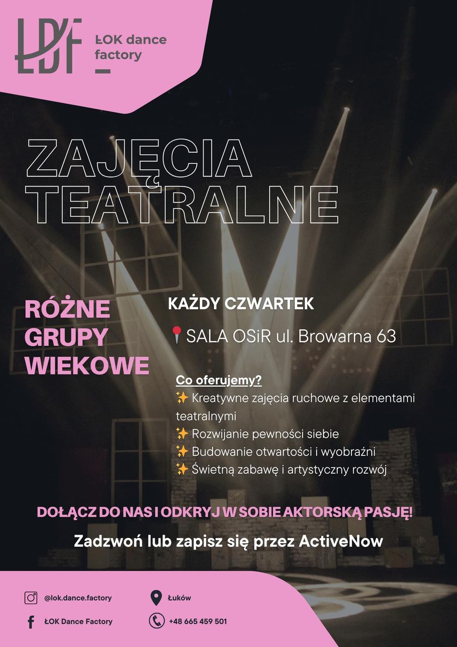 Łukowski Ośrodek Kultury zaprasza na Zajęcia Teatralne ŁOK Dance Factory. Ta propozycja skierowana jest do dzieci i młodzieży.