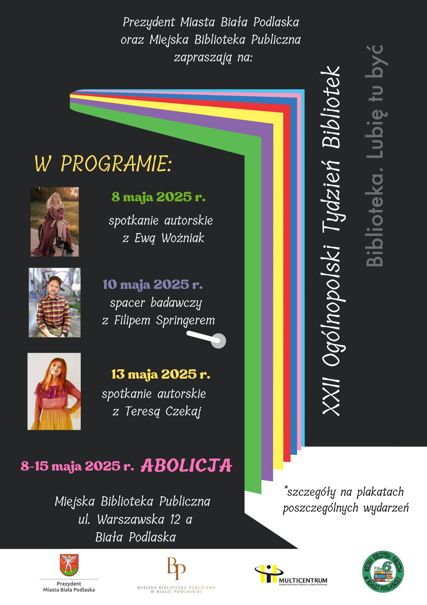 Co czeka wszystkich ewentualnych uczestników? 8 maja o godz. 18:00 w Bialskiej Galerii Fotografii odbędzie się spotkanie autorskie z Ewą Woźniak. 10 maja 2025 r. o godz. 14:00 odbędzie się spacer badawczy z Filipem Springerem. Zbiórka na placu przed głównym budynkiem Miejskiej Biblioteki Publicznej.13 maja o godz. 18:00 w Filii nr 6 Miejskiej Biblioteki Publicznej odbędzie się spotkanie autorskie z Teresą Czekaj.