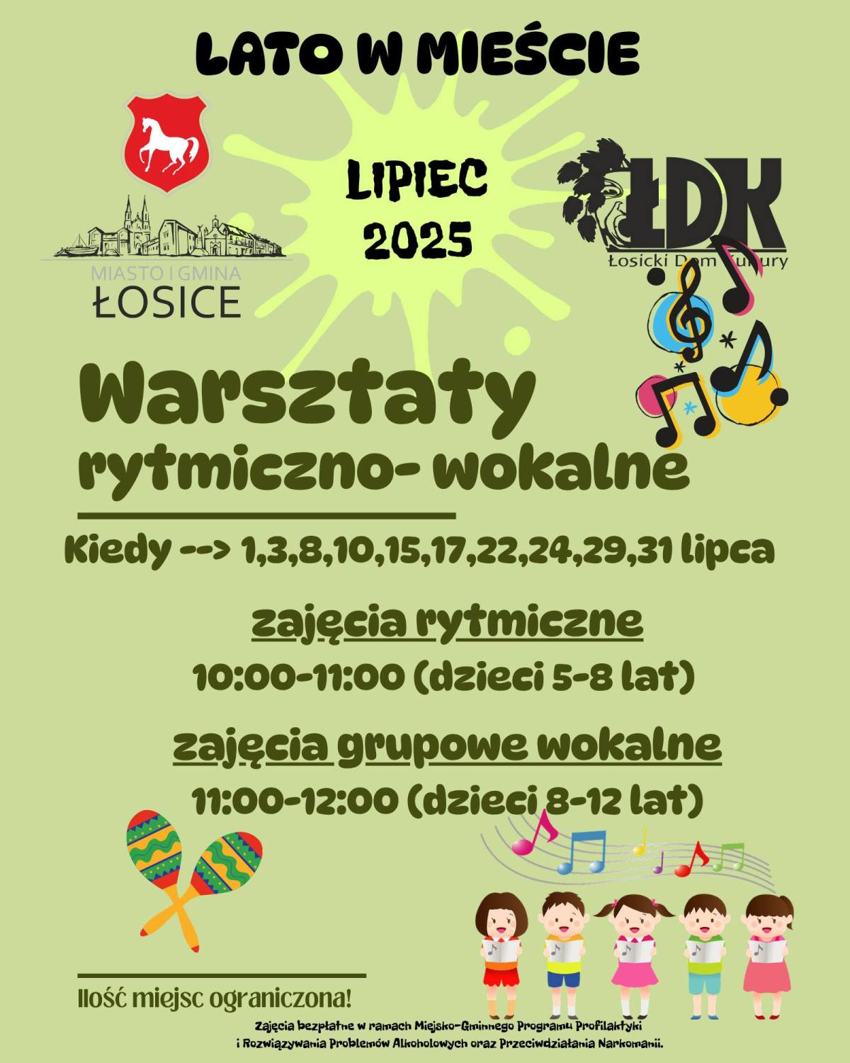 Łosicki Dom Kultury zachęca do wzięcia udziału m.in. w warsztatach rytmiczno-wokalnych, artystycznych, zajęciach sportowych i wakacji z biblioteką. Jest też czas dla miłośników kina. Szczegóły poniżej na plakatach.