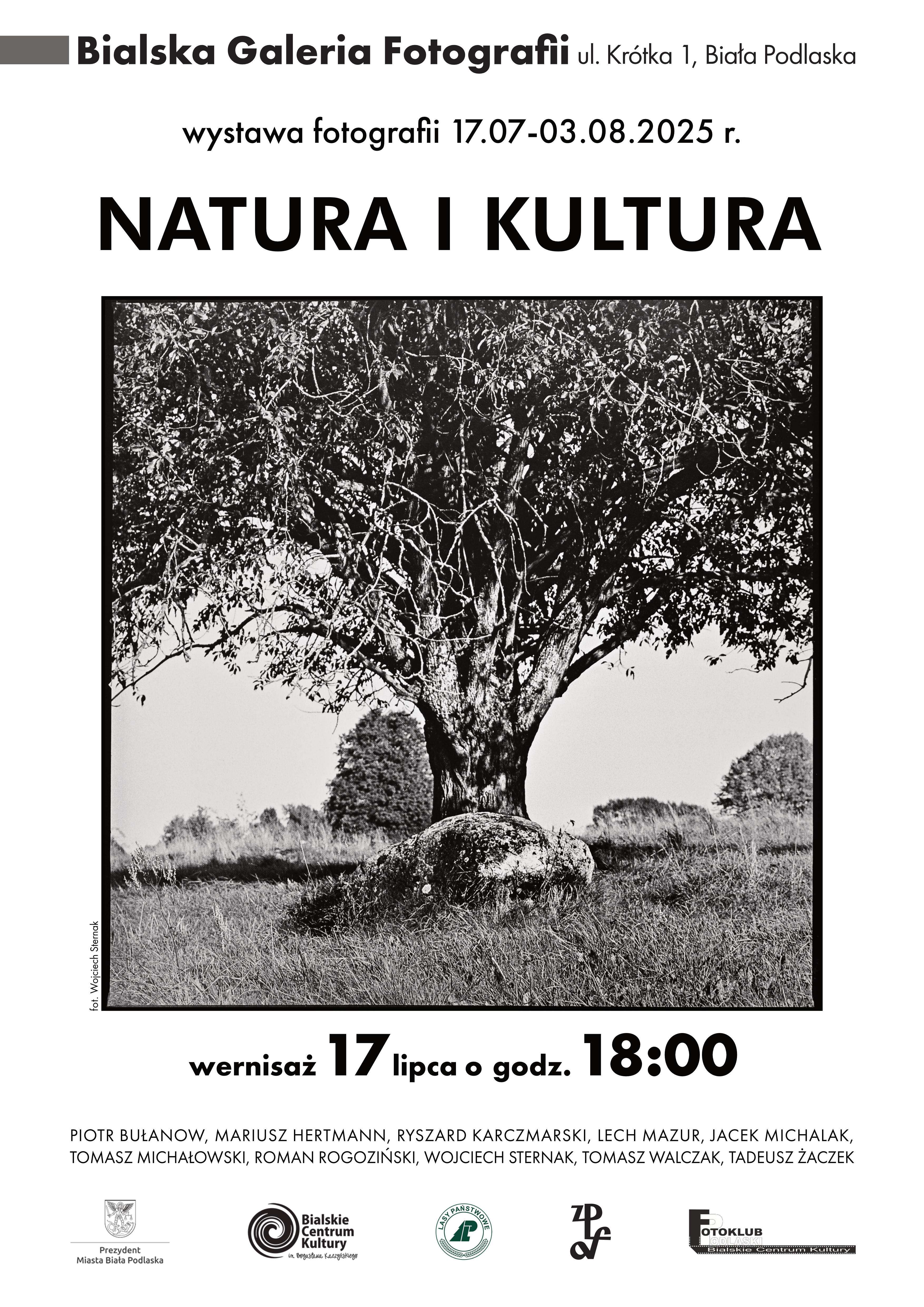 Wystawa „Natura i Kultura" jest efektem fotograficznego spotkania w przestrzeni Puszczy Augustowskiej – miejscu styku człowieka i natury, historii i współczesności.Dziesięciu autorów wrażliwie zarejestrowało obrazy tej przestrzeni, splatające się z osobistym doświadczeniem obecności, zadumy i spotkania z Innym – zarówno ludzkim, jak i nieludzkim.