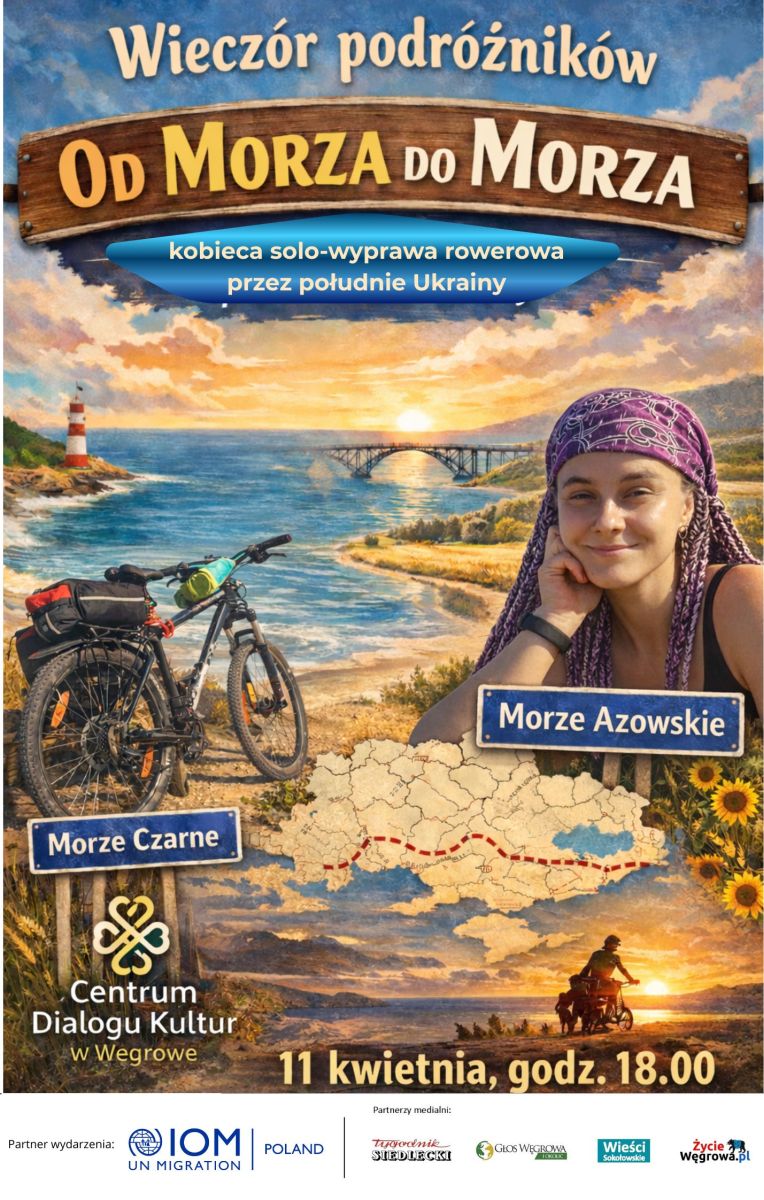 O tym, jak to wyglądało z perspektywy rowerowego siodełka – będzie można posłuchać w sobotę, 11 kwietnia, wieczorem w Centrum Dialogu Kultur w Węgrowie. Spotkanie z Sofią Szemetuch, która przemierzyła południową część Ukrainy rowerem w ostatnim roku przed wojną, rozpocznie się o godzinie 18.00.