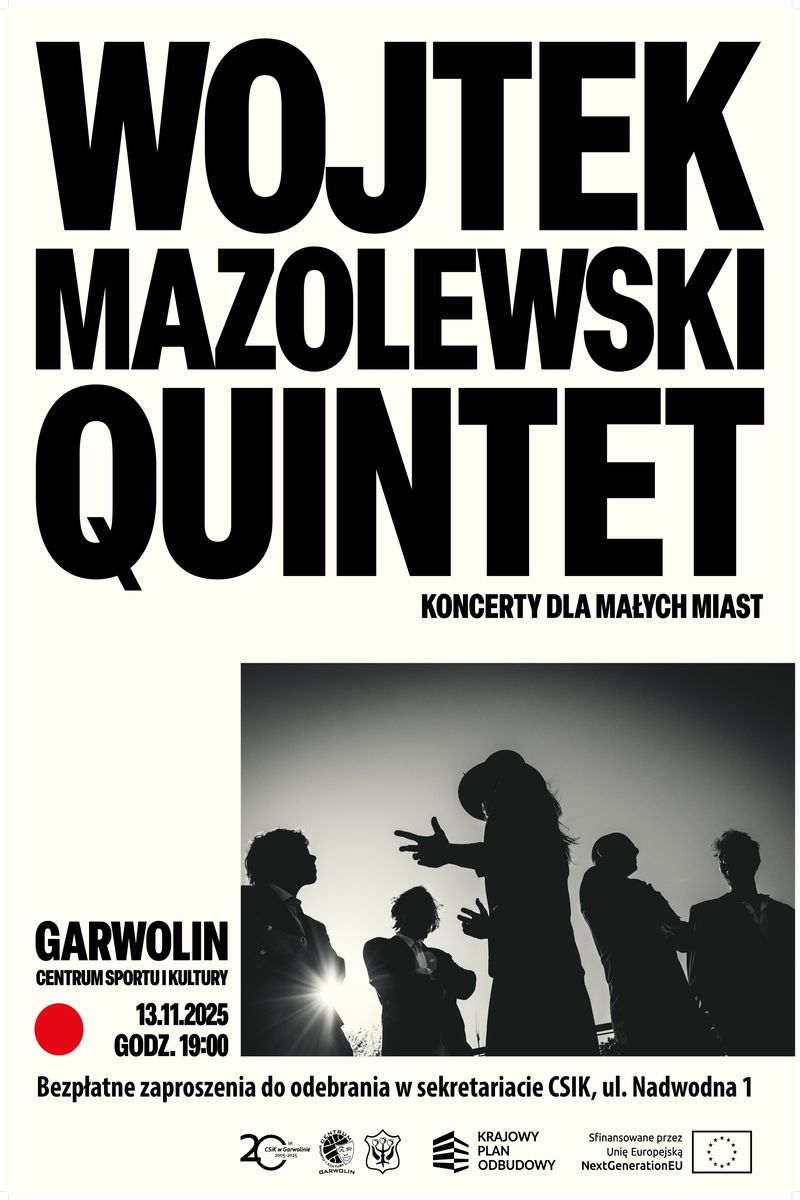 Już wkrótce mieszkańcy Garwolina i okolic będą mieli okazję przekonać się, jak utwory z płyty „Live Spirit I” brzmią na żywo. Wojtek Mazolewski Quintet zagra w sali widowiskowej Centrum Sportu i Kultury w Garwolinie 13 listopada o godzinie 19:00. Koncert odbędzie się w ramach trasy „Koncerty dla Małych Miast”, dzięki której zespół dociera z muzyką do mniejszych miejscowości, niosąc przesłanie radości, wspólnoty i otwartości.
