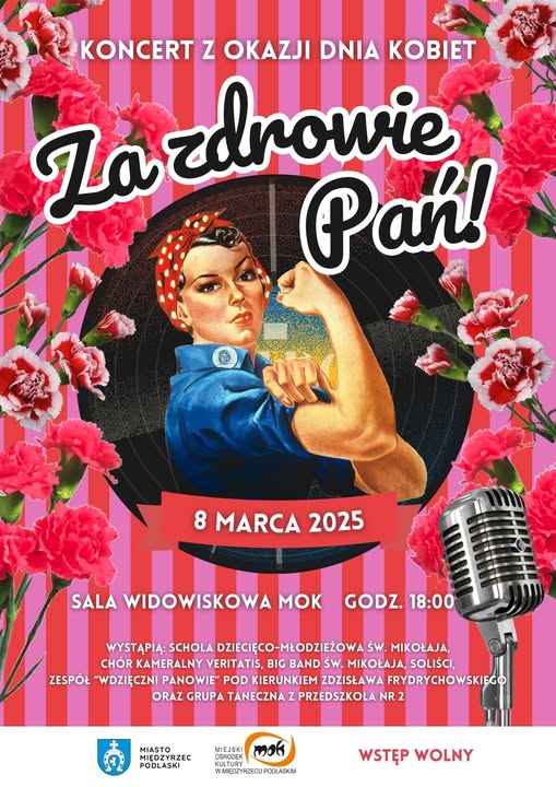 Schola dziecięco-młodzieżowa, Chór Kameralny Veritatis, soliści i zespół Big Band z parafii św. Mikołaja oraz zespół „Wdzięczni Panowie” wystąpią na scenie Miejskiego Ośrodka Kultury w Międzyrzecu Podlaskim. Koncert z okazji Dnia Kobiet zatytułowany „Za zdrowie Pań” odbędzie się w sobotę, 8 marca, pod kierunkiem Zdzisława Frydrychowskiego organisty parafii św. Mikołaja w Międzyrzecu Podlaskim.
