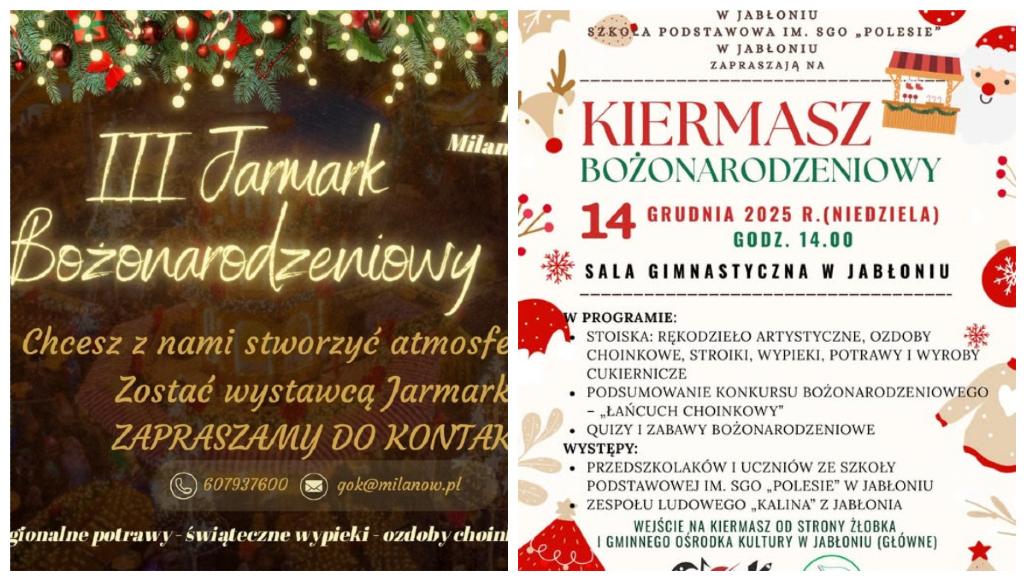 Region Parczew Milanów Jabłoń Wt. 09.12.2025 08:31:16 Jarmarki bożonarodzeniowe w Milanowie i Jabłoniu