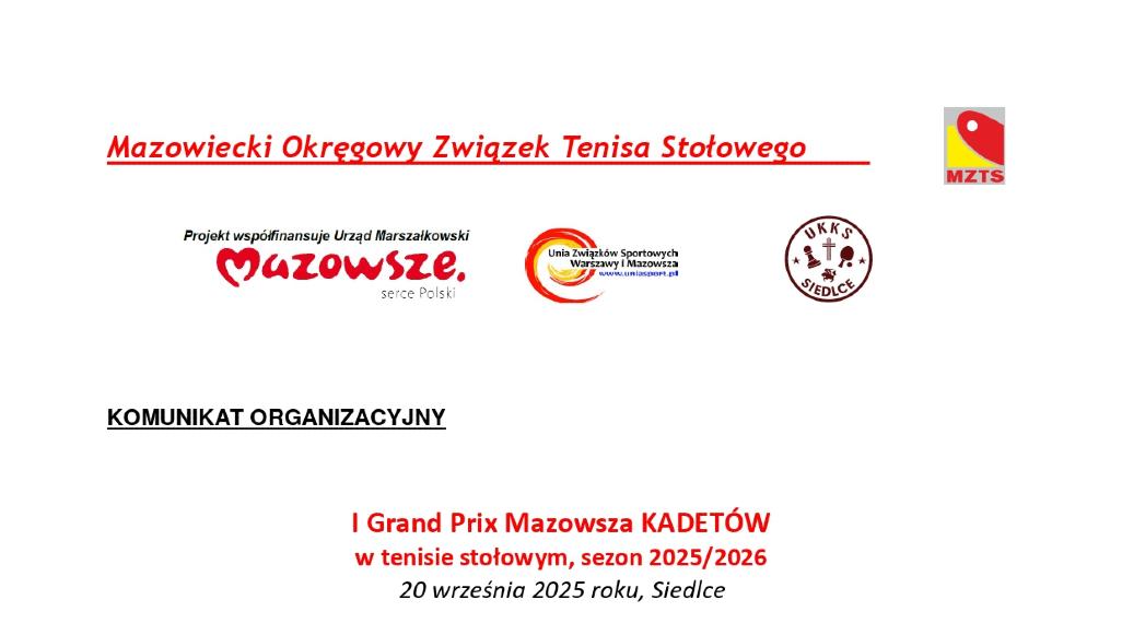Siedlce Sport Patronat medialny Śr. 17.09.2025 15:14:04 Siedlce gospodarzem I Grand Prix Mazowsza Kadetów w tenisie stołowym