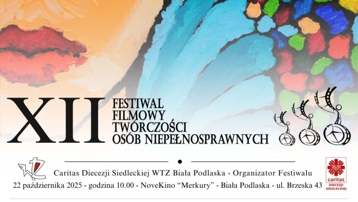 Region Biała Podlaska Patronat medialny Caritas BiałaPodlaska Pon. 20.10.2025 09:26:43 XII Festiwal Filmowy Twórczości Osób Niepełnosprawnych