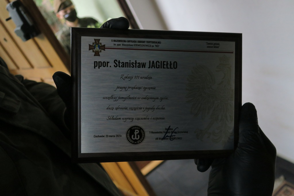 Porucznik Jagiełło jest w stałym kontakcie z Żołnierzami Wojsk Obrony Terytorialnej. Nie mogło ich zabraknąć także podczas jubileuszu. - Bardzo ważne są dla nas takie uroczystości, bo to są ludzie, z których dokonań, z których życiorysów, przebiegu życia czerpiemy całymi garściami (…). Tych ludzi szanujemy i cenimy. Cenimy ich dorobek życiowy i tez opiekujemy się nimi - mówi ppłk Dariusz Kozłowski, za-ca dowódcy 5 Mazowieckiej Brygady Obrony Terytorialnej.