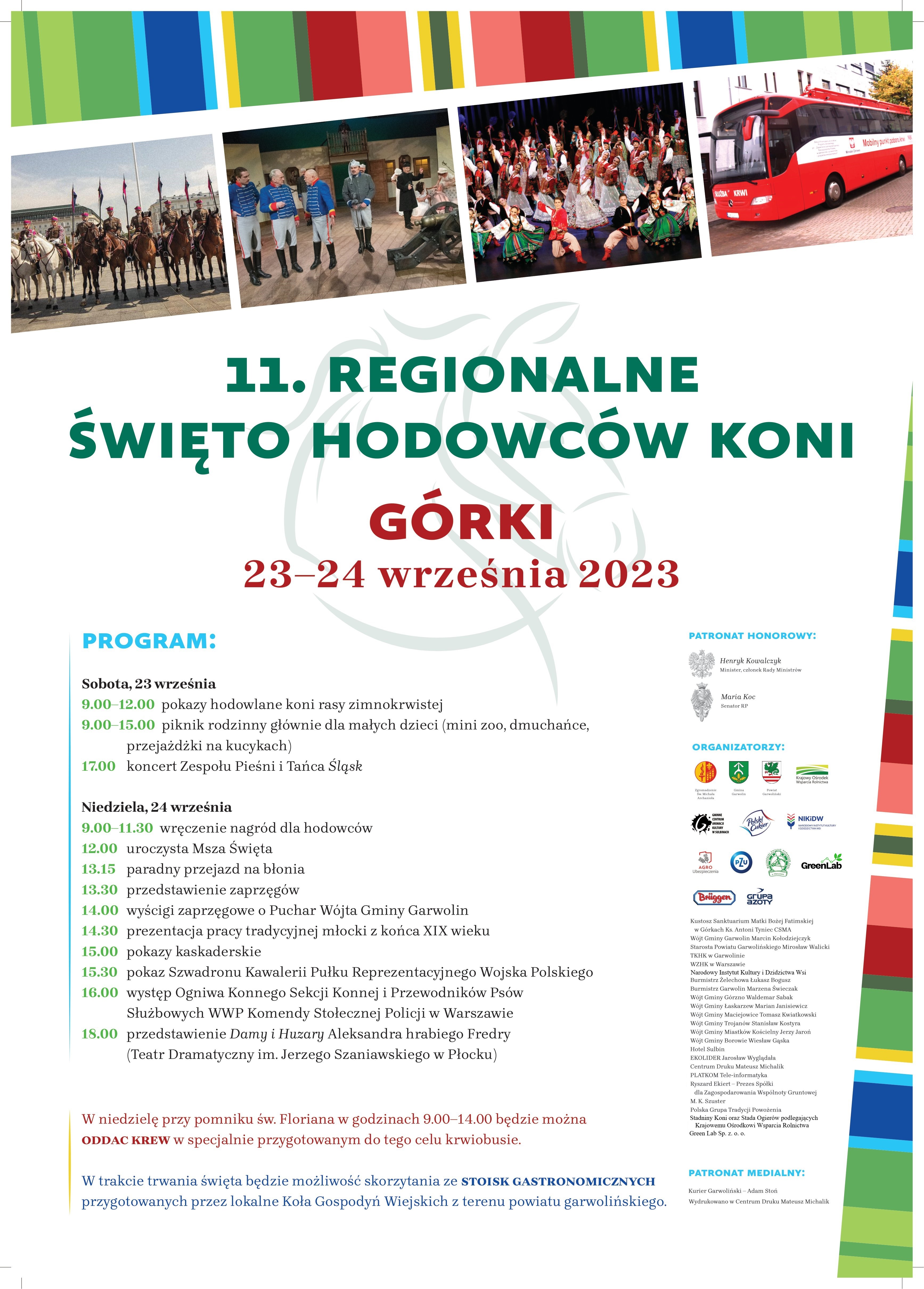 Dwudniowe święto rozpocznie się w sobotę o godz. 9.00 pokazami hodowlanymi koni rasy zimnokrwistej. Tego dnia odbędzie się także Piknik rodzinny, głównie dla małych dzieci. Po południu na uczestników czeka koncert Zespołu Pieśni i Tańca Śląsk.W niedzielę zaplanowano wyścigi zaprzęgowe oraz pokazy kaskaderskie czy przedstawienie Damy i Huzary Aleksandra Fredry w wykonaniu Teatru Dramatycznego im. Jerzego Szaniawskiego w Płocku.