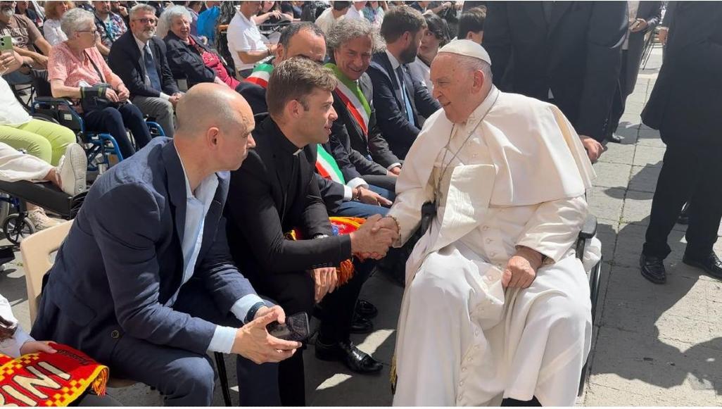 Region Kościół Wt. 28.05.2024 09:32:21 Dzieci z Białegostoku na audiencji u papieża. Franciszek otrzymał szalik Jagiellonii Białystok