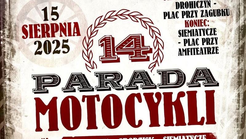 Region Siemiatycze Drohiczyn Czw. 14.08.2025 07:51:28 15 sierpnia odbędzie się Parada Motocykli Drohiczyn - Grodzisk – Siemiatycze