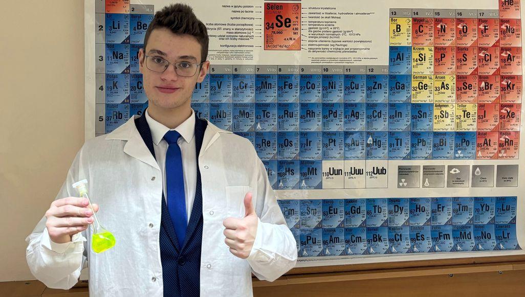 Region Łuków Śr. 28.02.2024 10:02:32 Bartek Sierociuk z IV LO w Łukowie finalistą Olimpiady Chemicznej