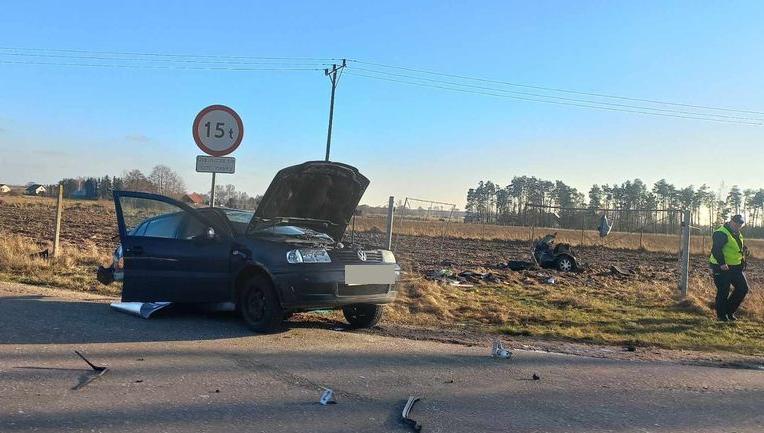 Siedlce Region Pon. 29.01.2024 14:45:31 Wypadek na trasie Siedlce - Korczew. Auto rozpadło się na pół