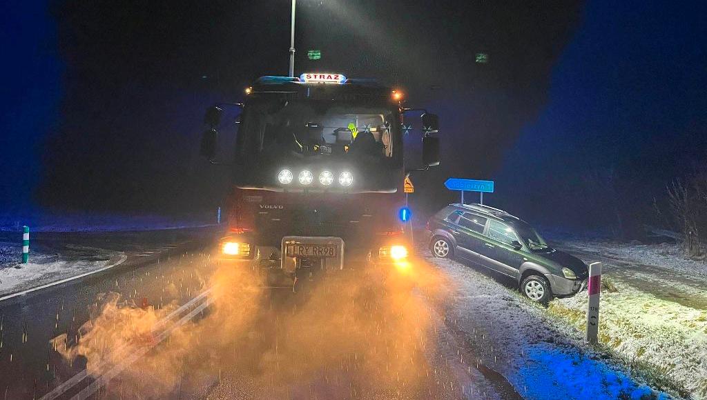 Region Ryki Wt. 02.01.2024 16:14:13 Kierowca nie dostosował prędkości do warunków panujących na drodze. Samochód wjechał do rowu