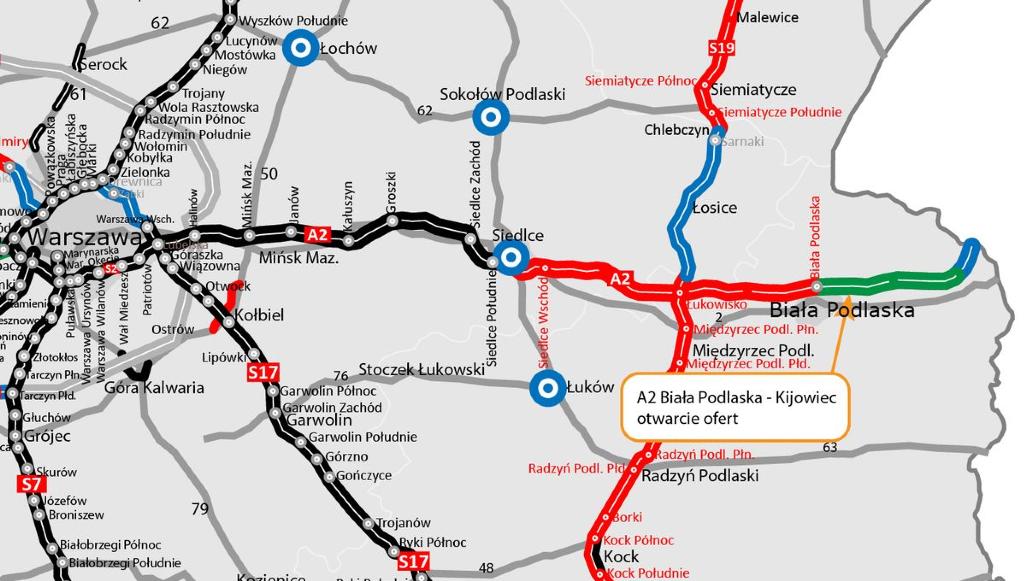 Siedlce Region Kierowcy Czw. 18.12.2025 15:20:20 Wkrótce zakończenie budowy kolejnych odcinków autostrady A2 na wschód od Warszawy