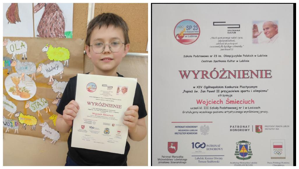 Region Łosice Pon. 09.06.2025 14:28:07 Uczeń Szkoły Podstawowej nr 1 w Łosicach wyróżniony w ogólnopolskim konkursie plastycznym