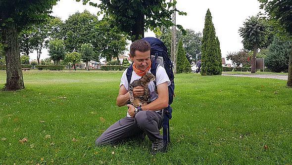 Region Biała Podlaska Śr. 25.08.2021 15:15:45 Pan i kot ruszyli w drogę, by zebrać pieniądze dla chorej Kingi