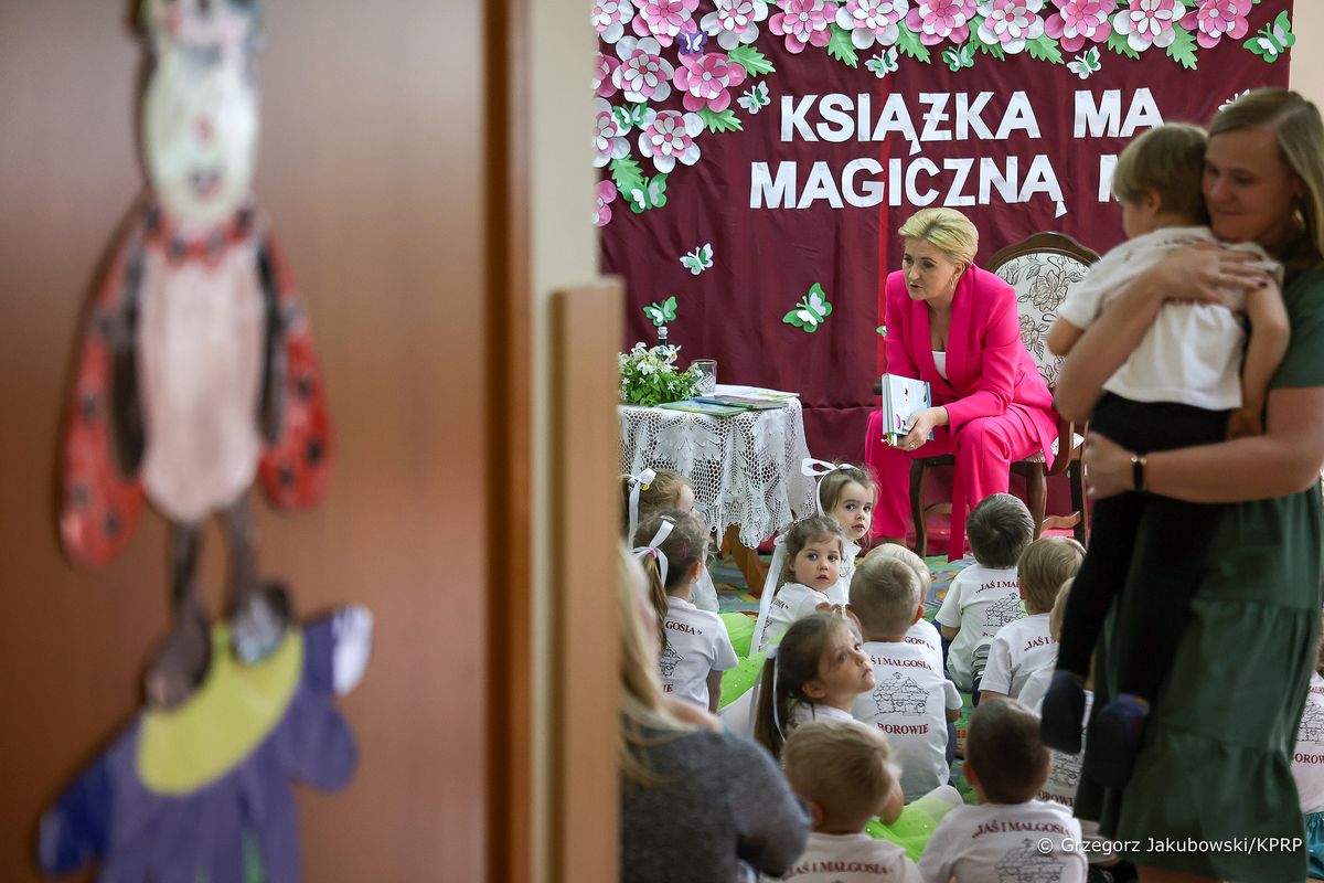 62% Polaków nie przeczytało w ciągu ubiegłego roku ani jednej książki! Najnowsze statystyki opublikowane przez Bibliotekę Narodową potwierdzają niepokojący stan czytelnictwa w naszym kraju. W Zespole Oświatowym w Borowiu Małżonka Prezydenta rozmawiała z uczniami oraz przedszkolakami o korzyściach płynących z sięgania po książki. – Bardzo chętnie przyjmuję zaproszenia do takich placówek oświatowych, które organizują różnego rodzaju wydarzenia, dzięki którym uczniowie mogą poszerzać swoje horyzonty – mówiła w poniedziałek Pani Prezydentowa. – Interesuję się literaturą, a książki to moje hobby, dlatego bardzo się ucieszyłam, że zarówno w przedszkolu, jak i w szkole podstawowej realizowane są projekty, które mają na celu promowanie czytelnictwa wśród dzieci i młodzieży – dodała.W skład Zespołu Oświatowego w Borowiu wchodzą Publiczna Szkoła Podstawowa im. Aleksandra Sasimowskiego i Publiczne Przedszkole „Jaś i Małgosia”. Podczas rozmowy z Pierwszą Damą dzieci wymieniały zalety czytania. Jak zauważyły, książki są źródłem wiedzy o świecie, rozwijają wyobraźnię, stymulują pracę mózgu, poszerzają słownictwo i uczą ortografii, a przede wszystkim są fajne. Pani Prezydentowa zwróciła uwagę, że czytanie rozbudza ciekawość świata, kształtuje inteligencję emocjonalną i modeluje prawidłowe postawy społeczne oraz wartości moralne.
