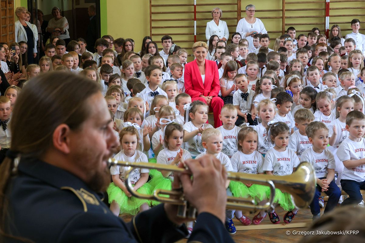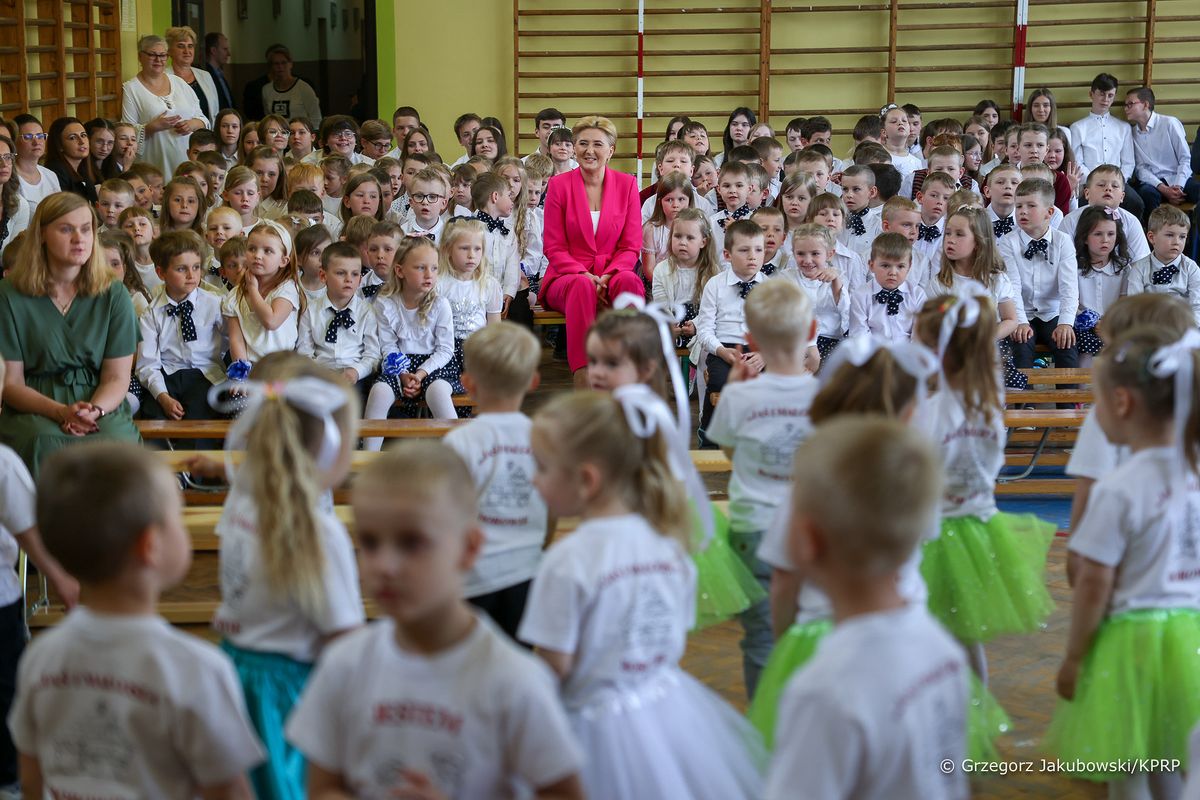 Agata Kornhauser–Duda zwróciła uwagę na bogatą ofertę zajęć pozalekcyjnych prowadzonych przez szkołę podstawową. Młodzież mówiła o szkolnym chórze czy SKS. – To ogromnie ważne, bo szkoła jest miejscem, gdzie nie tylko zdobywa się wiedzę, ale rozwija talenty i zainteresowania – tłumaczyła Pani Prezydentowa. Przypomniała, że szkoła ma także jeszcze jedną ważną funkcję. – To tutaj nawiązujecie relacje rówieśnicze i zawieracie przyjaźnie. Wierzcie mi: często są to znajomości trwające całe życie. Dlatego nie zaniedbujcie tej płaszczyzny: spędzajcie ze sobą czas i pomagajcie sobie nawzajem – powiedziała. Pierwsza Dama nawiązała do realizowanych w szkole akcji charytatywnych i wolontariatu, podkreślając, że te aktywności uczniów wspierają ich zrozumienie i budowanie empatii wobec drugiego człowieka.