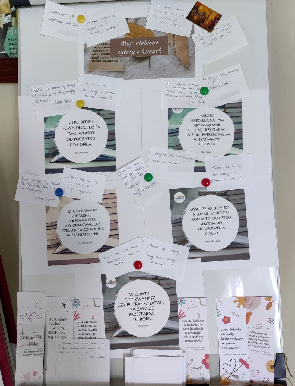 Dodatkowo, przed biblioteką, stała plansza z najbardziej znanymi, ciekawymi cytatami z popularnych książek, a każdy kto chciał się podzielić swoim ulubionym cytatem, mógł go wypisać na przygotowanych kartkach i umieścić na planszy. Można zrobić to jeszcze do końca października. Można było także zabrać ze sobą przygotowaną w bibliotece zakładkę ze znanym cytatem.