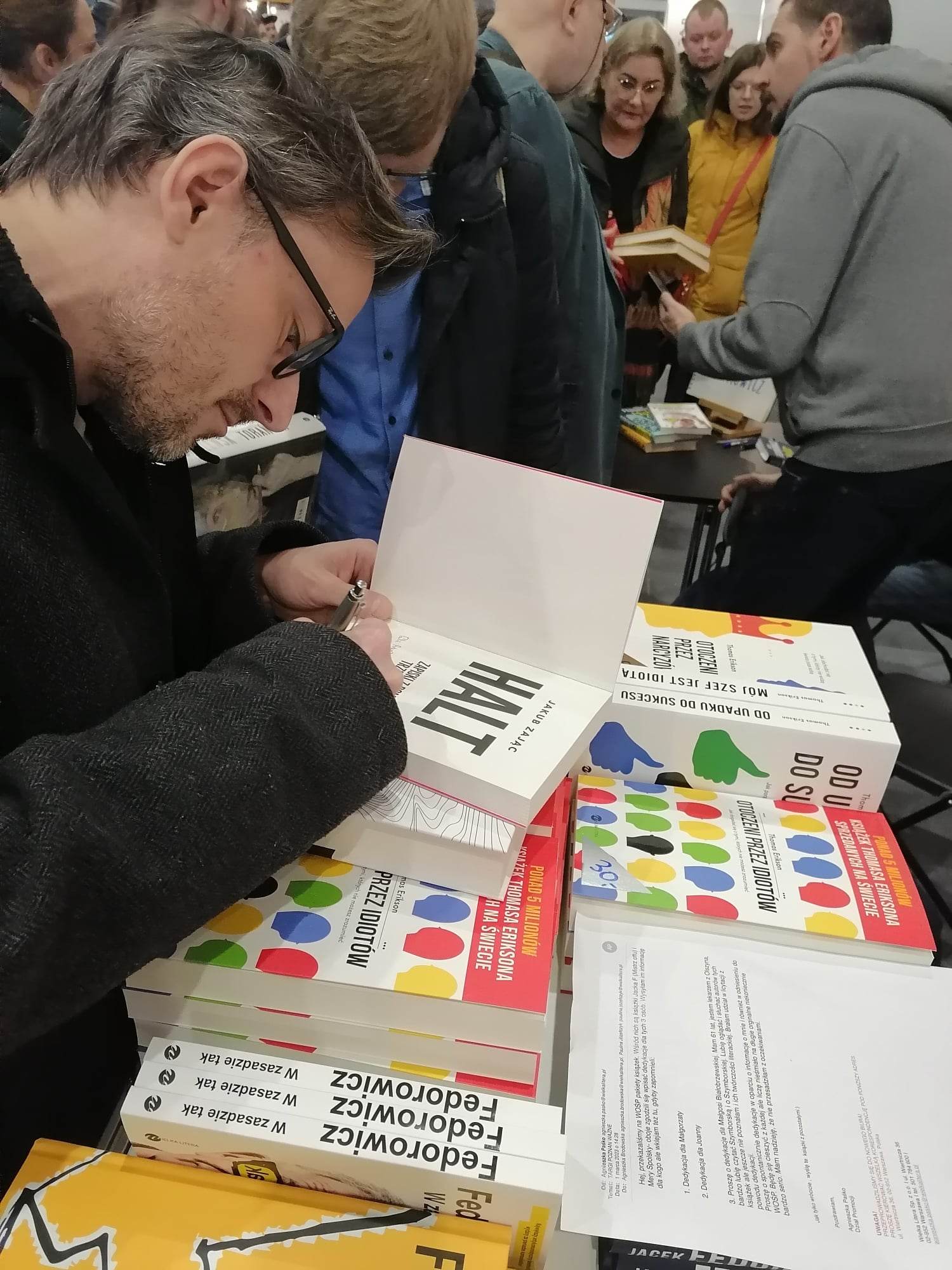 - Dzięki temu wydarzeniu mogliśmy spotkać się z różnymi wydawcami i porozmawiać z nimi odnośnie literatury, jak również skonsultować się jeśli chodzi o książki, jakie zamawiamy do biblioteki. Na targach było bardzo dużo spotkań z autorami. Niestety, odbywały się w tym samym czasie na trzech różnych scenach, więc nie mogliśmy być obecni na wszystkich. Ja osobiście byłam na spotkaniu z Anetą Jadowską i z Marcinem Mortką. Było to niesamowite i elektryzujące wydarzenie – podsumowuje wyjazd Diana Hetman pracownik Gminnej Biblioteki Publicznej w Podedwórzu.