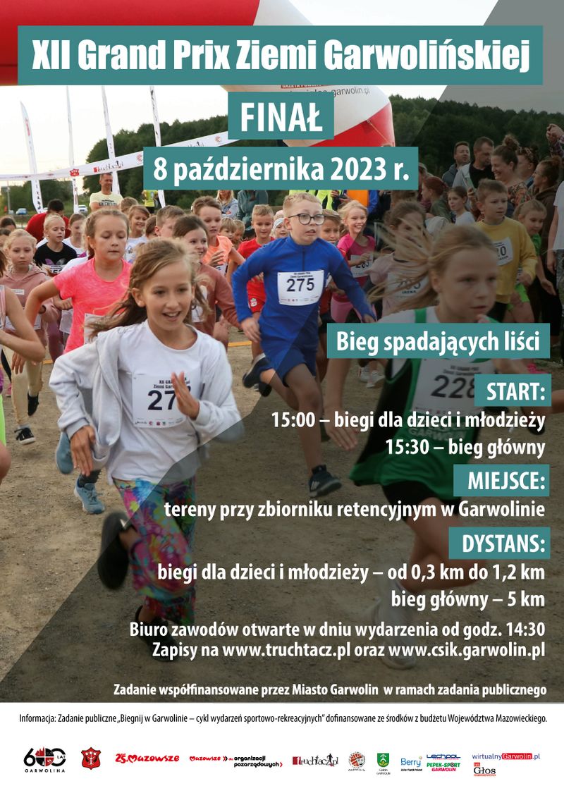 Najbliższe zawody zamykają tegoroczne zmagania. Wielki finał pod hasłem „Bieg Spadających Liści” odbędzie się 8 października na terenach przy zbiorniku retencyjnym w Garwolinie. Biuro zawodów będzie czynne od godziny 14:30. O 15:00 rozpoczną się biegi dla dzieci i młodzieży, a o 15:30 wystartują dorośli.