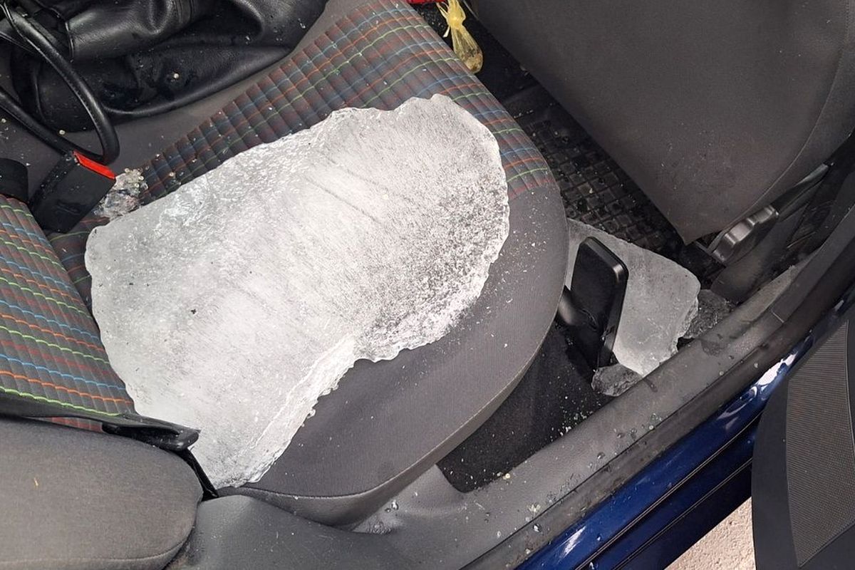 Bryła lodu spadła z ciężarówki. Przebiła szybę i raniła pasażerkę