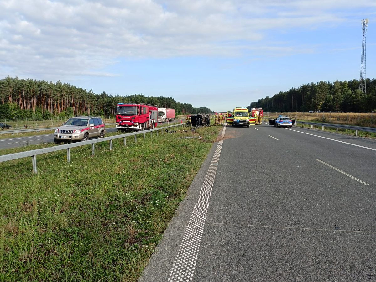 Bus z 10 osobami dachował, karetka jadąca z rannymi zderzyła się z osobówką