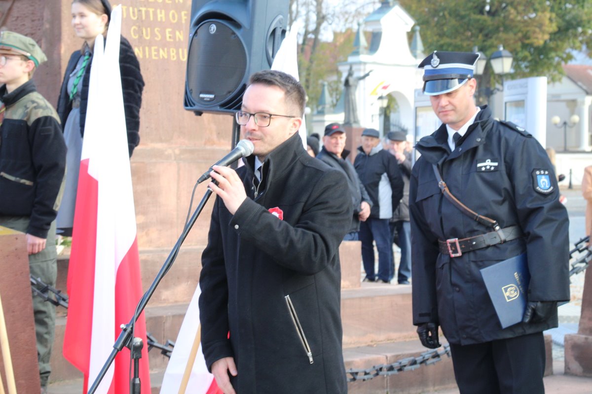 Kolejnym punktem uroczystości było złożenie kwiatów pod Pomnikiem Poległych za Ojczyznę. - W naszej przestrzeni medialnej, w życiu społecznym pojawiają się często ludzie, którzy nakładają biało-czerwone barwy i mówią nam jak mamy żyć, co jest dobre a co jest złe ale muchomor też ma biało-czerwone barwy a w środku jest tylko jad i trucizna. Musimy jako społeczeństwo budować patriotyzm. Patriotyzm zaczyna się tu, w sercu każdego z was, w międzyrzeckim sercu na Placu Jana Pawła II w naszym regionie i w całej Polsce. Każdego roku przychodzimy tutaj, żeby Polska była Polską – mówił Paweł Łysańczuk Burmistrz Międzyrzeca Podlaskiego.