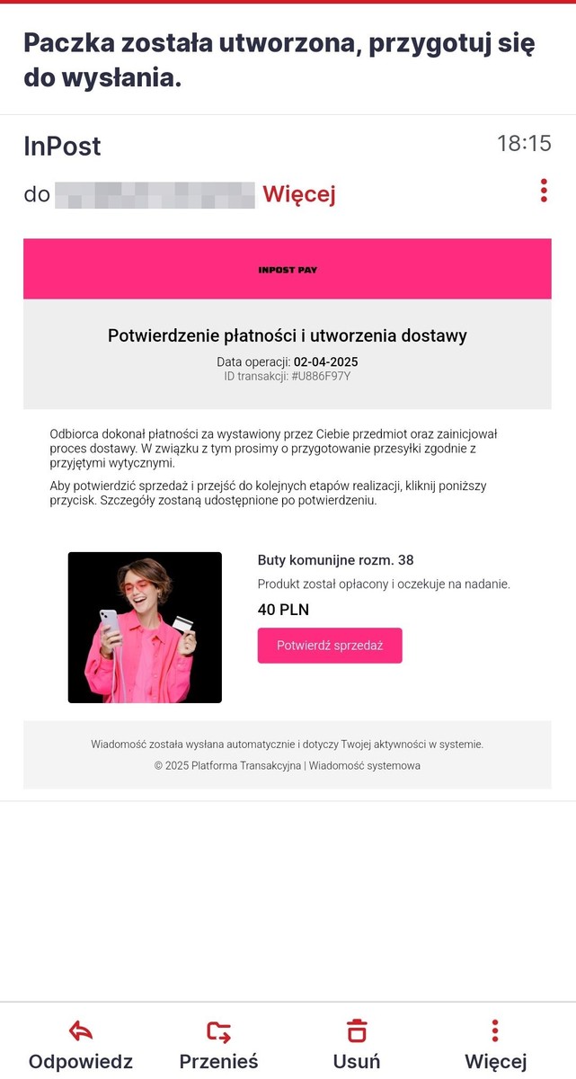 Policja wielokrotnie informowała i ostrzegała, że oszuści ciągle szukają potencjalnych ofiar. Wybierają je nie tylko wśród robiących zakupy w internecie, ale i wśród sprzedających. Niestety ostatnio przekonała się o tym 39-latka.2 kwietnia pokrzywdzona kobieta wystawiła do sprzedaży na portalu społecznościowym komunijne buty. Bardzo szybko skontaktowała się z nią kobieta z Radzymina zainteresowana ich kupnem. Prosząc o adres e-mail pisała na komunikatorze, że zapłaci za nie żądaną kwotę i dodatkowo zamówi kuriera po odbiór przesyłki. Po chwili na podany adres e-mail wpłynęła korespondencja od rzekomej firmy kurierskiej informująca o możliwości odbioru środków pieniężnych. Dołączony był do niej link, w który 39-latka kliknęła. Po tym została przekierowaną na łudząco podobną do prawdziwej stronę bankowości elektronicznej. Tam próbowała wprowadzić dane do logowania do swojego konta bankowego. Mimo komunikatów o błędach, uwierzyła w informację o planowanym kontakcie telefonicznym konsultanta bankowego. Niestety 39-latka przekazała dzwoniącej do niej kobiecie kody blik, które rzekomo miały umożliwić zaksięgowanie wpłaty na jej koncie. Nietrudno domyśleć się, że żadne pieniądze tam nie wpłynęły. Okazało się, że autoryzacja wygenerowanych kodów blik umożliwiła oszustom wypłatę pieniędzy z jej konta.