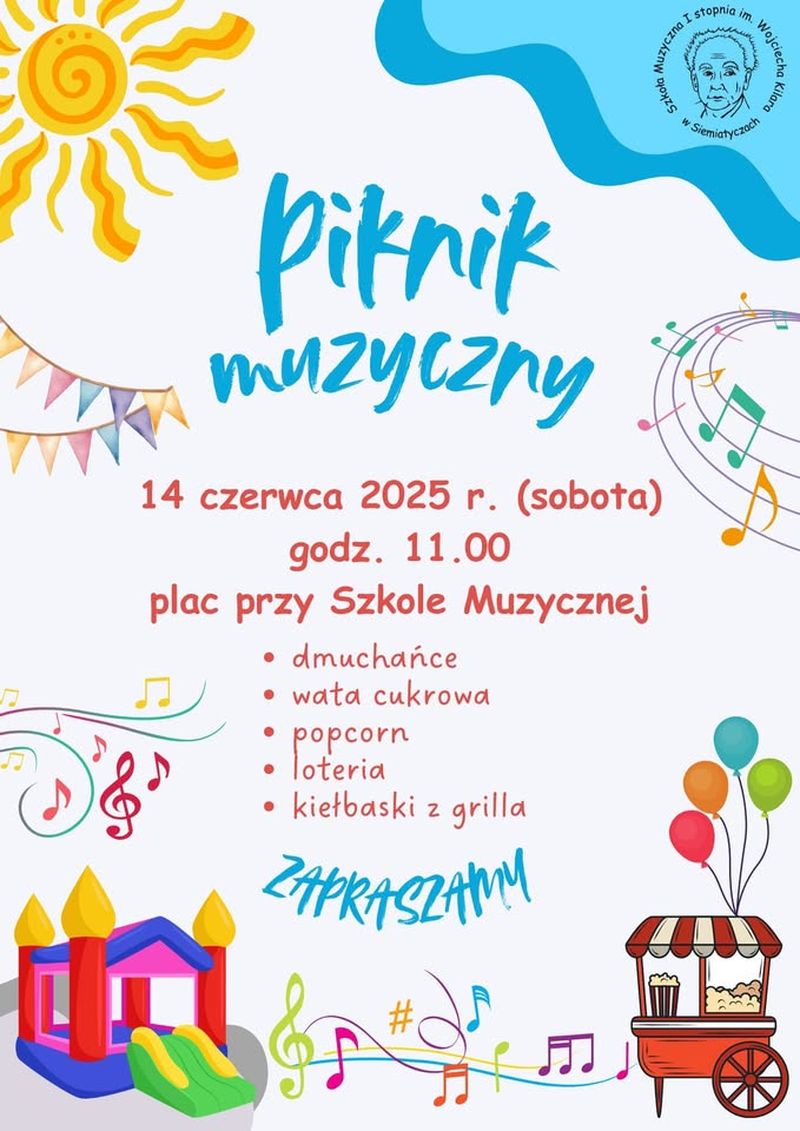 Dzień wcześniej, w sobotę od godz. 11:00, Szkoła Muzyczna w Siemiatyczach zaprasza na Piknik Muzyczny.