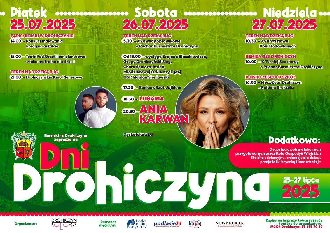 Na wyjątkowe święto zapraszają - Burmistrz Drohiczyna oraz Miejsko - Gminny Ośrodek Kultury w Drohiczynie. Patronat medialny - Katolickie Radio Podlasie i portal podlasie24.pl.Ramowy program Dni Drohiczyna 2025: