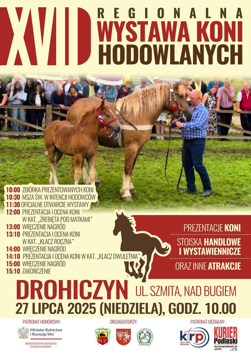 Dodatkowo: degustacja potraw lokalnych, stoiska edukacyjne, animacje, przejażdżki bryczką i wiele więcej! Zapisy na imprezy towarzyszące i kontakt: MGOK Drohiczyn – tel. 85 655 70 69