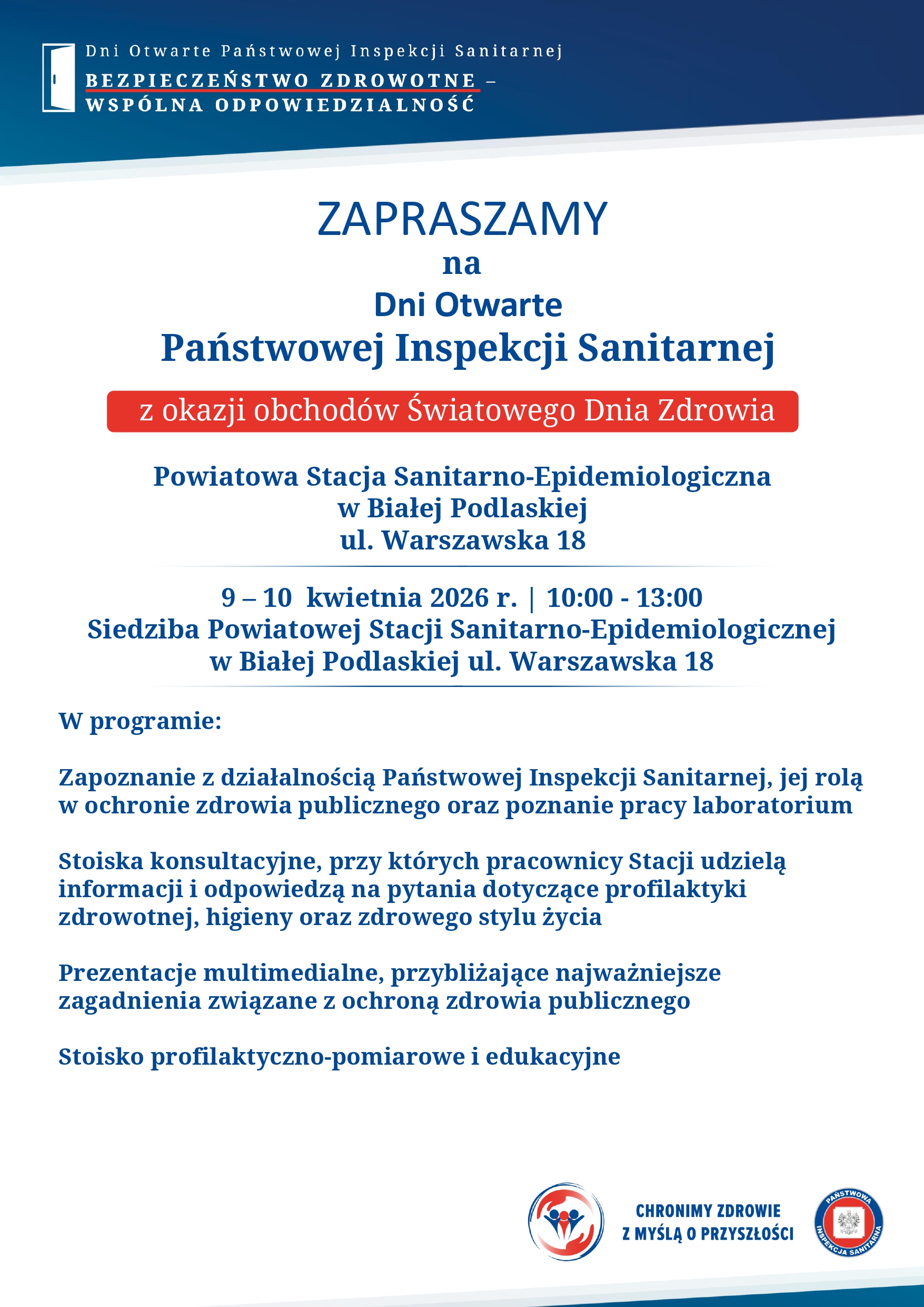 Przypadający 7 kwietnia Światowy Dzień Zdrowia stał się okazją do organizacji Dni Otwartych Państwowej Inspekcji Sanitarnej. Terenowe jednostki tej instytucji zapraszają więc do siebie wszystkich zainteresowanych ich działalnością.