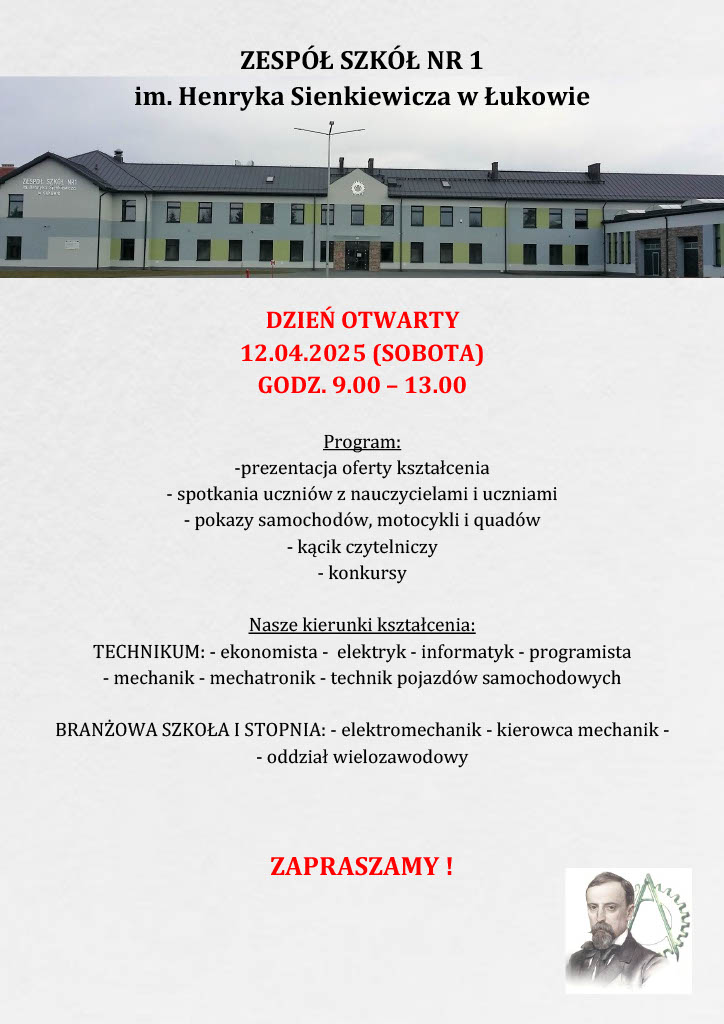 W sobotę, 12 kwietnia na dni otwarte zaprasza pięć łukowskich szkół średnich: I LO, IV LO oraz zespoły szkół nr 1, 2 i 3.