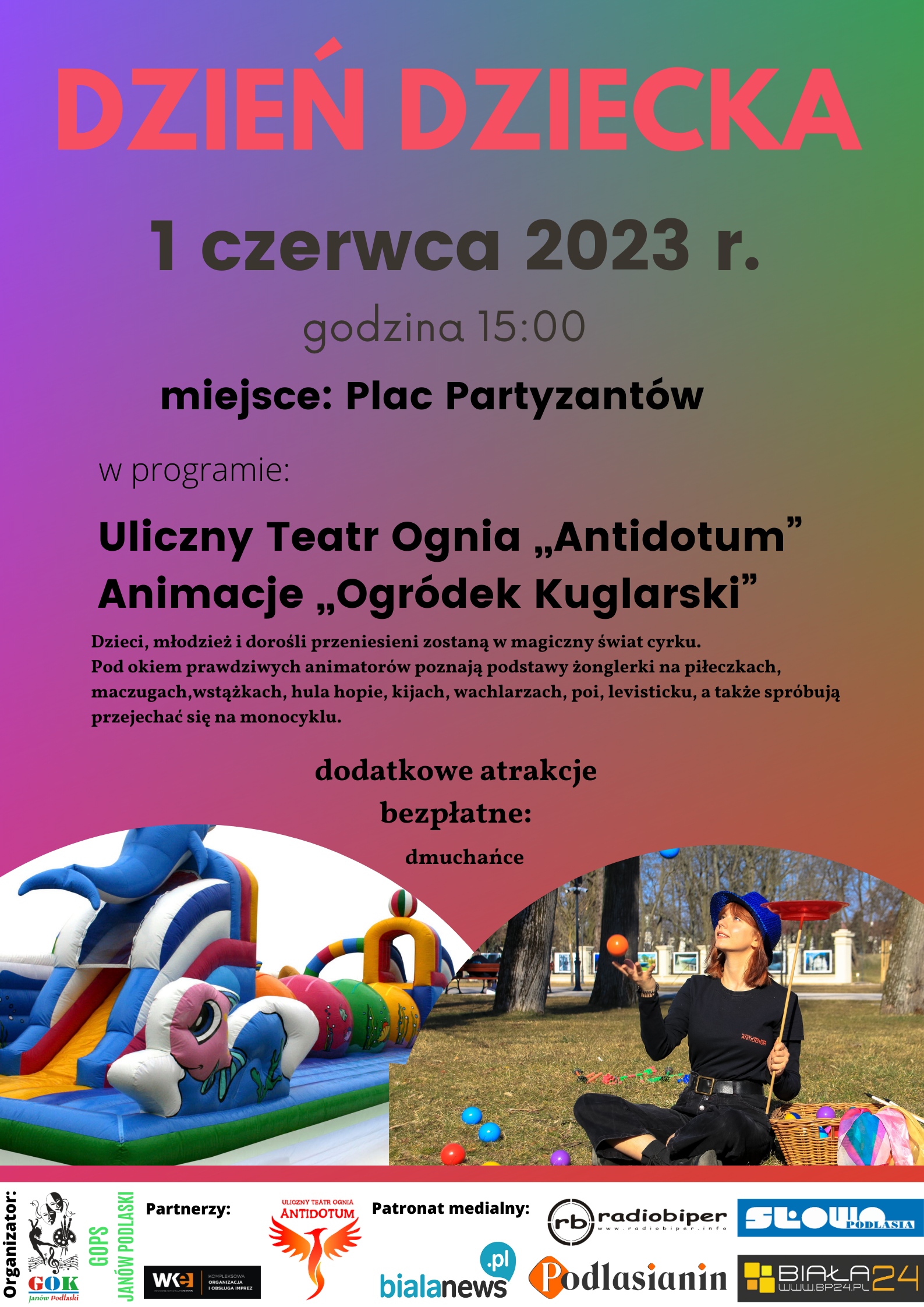 1 czerwca na Placu Partyzantów w Janowie Podlaskim zaplanowano Dzień Dziecka.