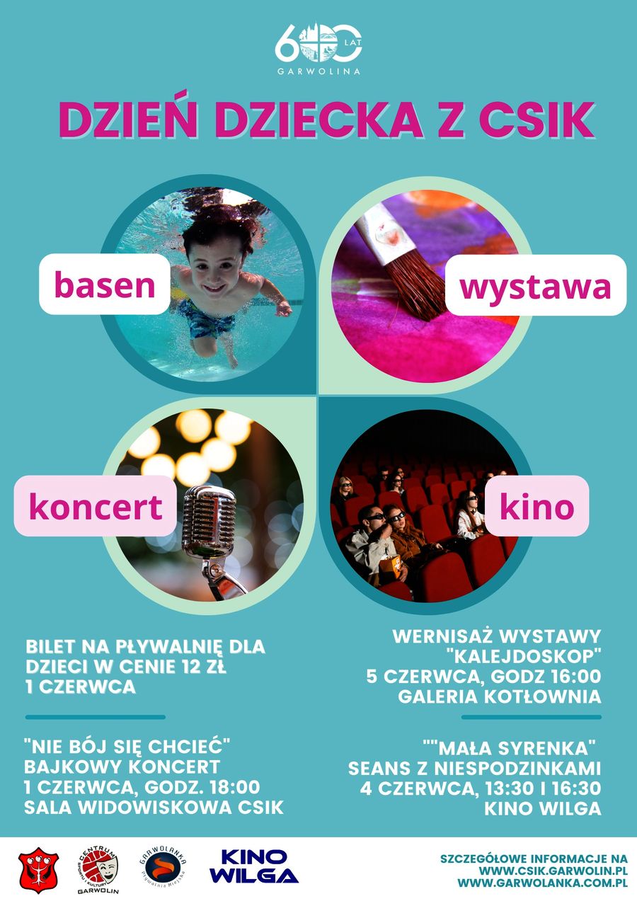 Święto dzieci w Centrum Sportu i Kultury w Garwolinie będzie trwało kilka dni. 1 czerwca do wspólnej zabawy zaprasza Pływalnia Miejska "Garwolanka". Przez cały dzień bilet wstępu na basen dla dzieci będzie kosztował 12 zł (nie dotyczy grup zorganizowanych).Wieczorem w Dzień Dziecka w sali widowiskowej CSiK odbędzie się koncert z najpiękniejszymi piosenkami z ulubionych bajek dzieci. "Nie bój się chcieć" to tytuł programu przygotowanego specjalnie na tę okazję przez Chór Miasta Garwolina. Początek wydarzenia o godzinie 18:00. Wstęp wolny.
