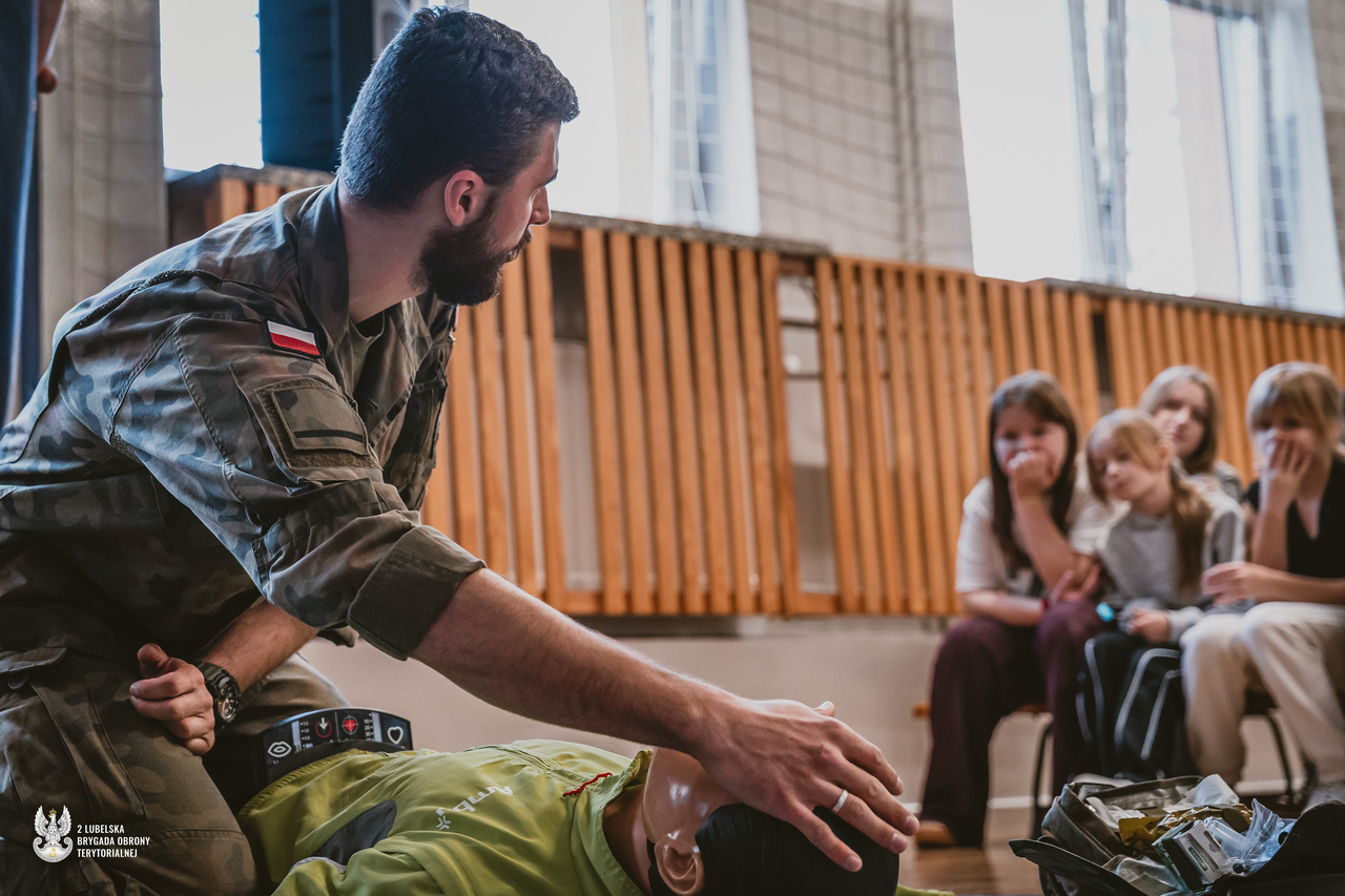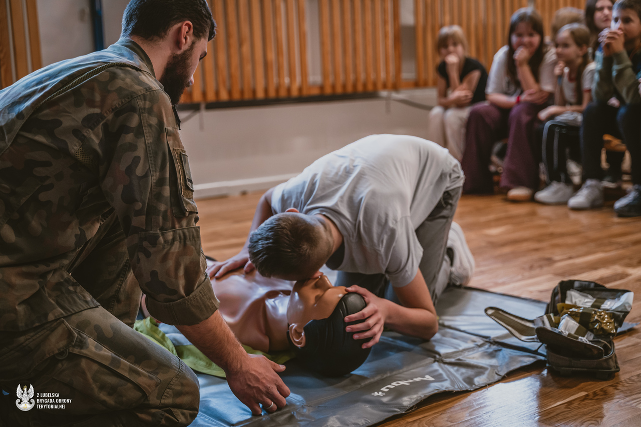 – Zajęcia łączą teorię z praktyką i pokazują, że bezpieczeństwo to nie tylko wiedza, ale też konkretne umiejętności – mówi szer. Sebastian z 22 Dęblińskiego Batalionu Lekkiej Piechoty.
