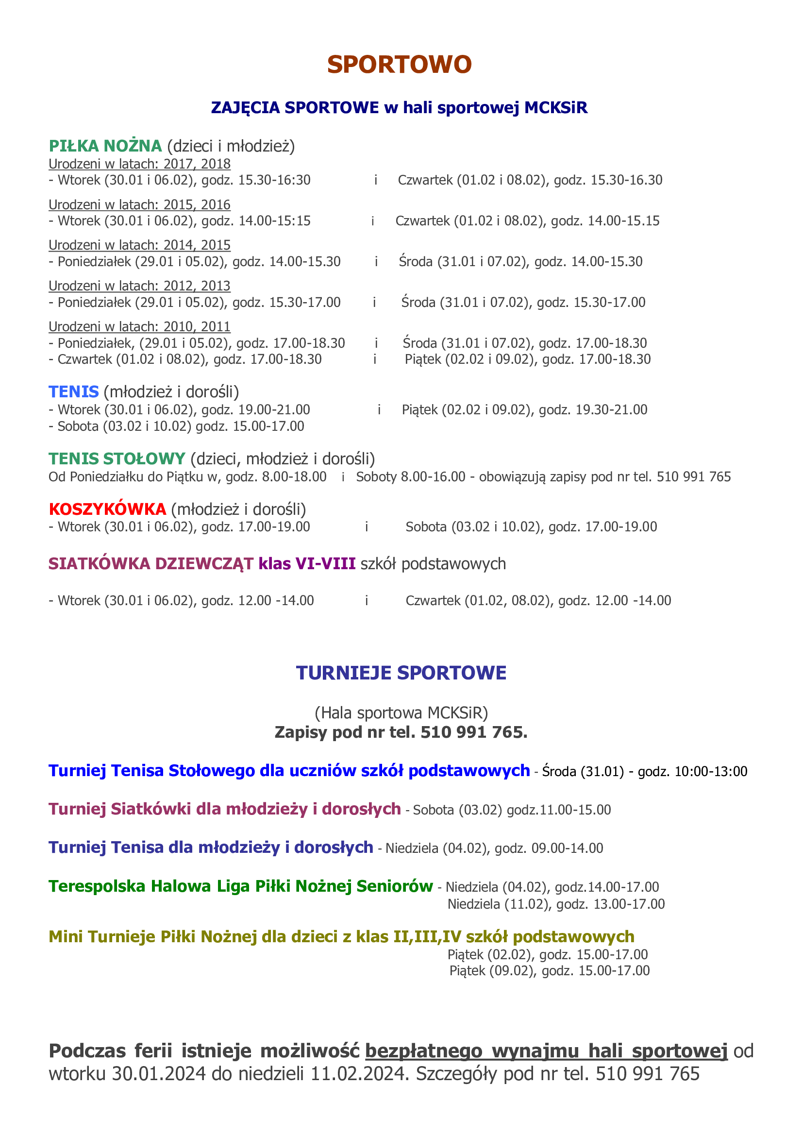 Szczegółowa oferta MCKSiR Terespol poniżej.