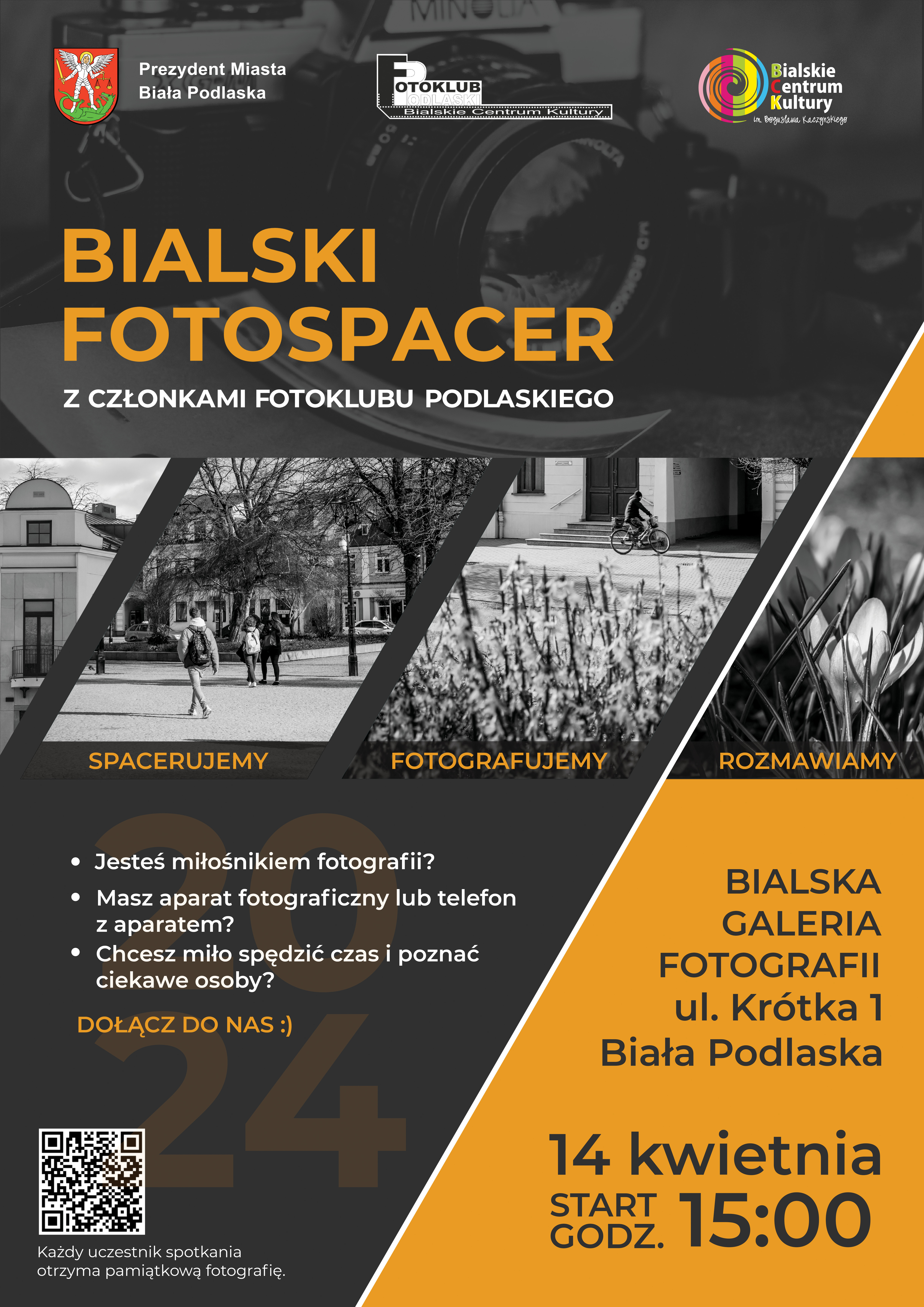 W niedzielę, 14 kwietnia o godzinie 15:00, w Bialskiej Galerii Fotografii odbędzie się kolejna edycja Bialskiego Fotospaceru. Uczestnicy wyruszą w miasto, mając do wykonania zadany temat fotograficzny.