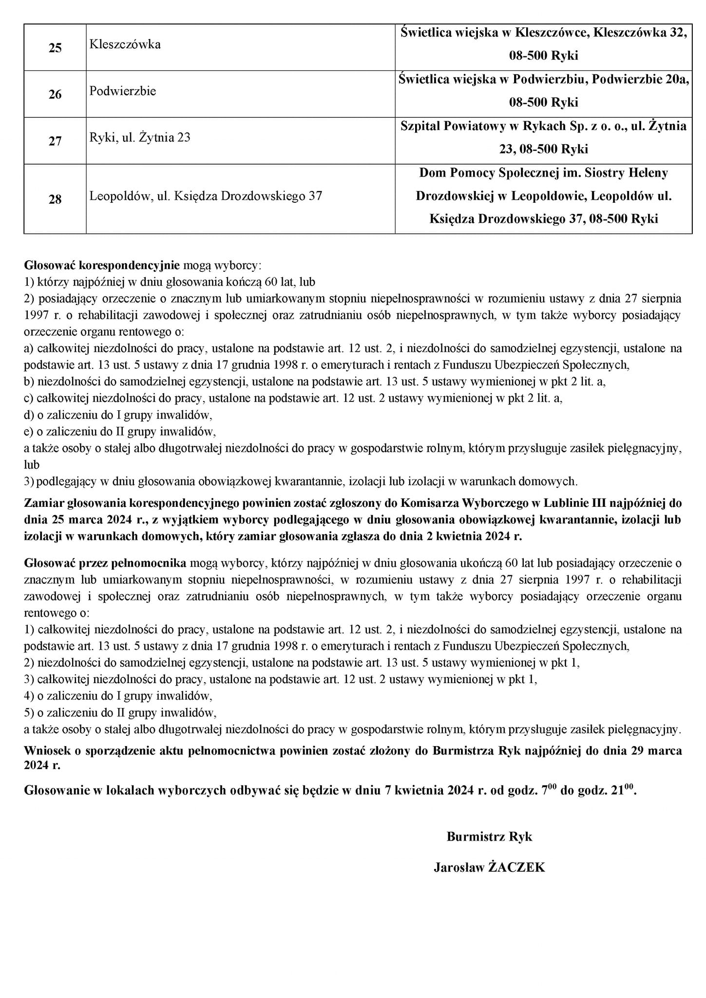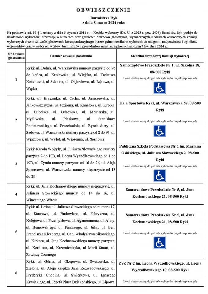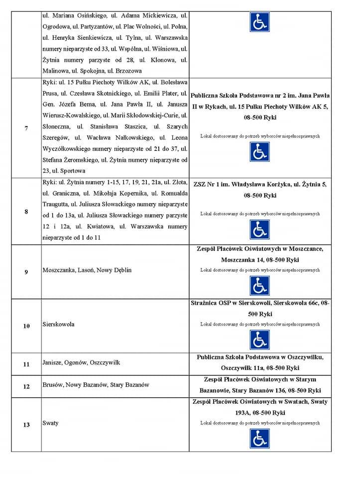 Granice obwodów do głosowania w wyborach samorządowych w gminie Ryki