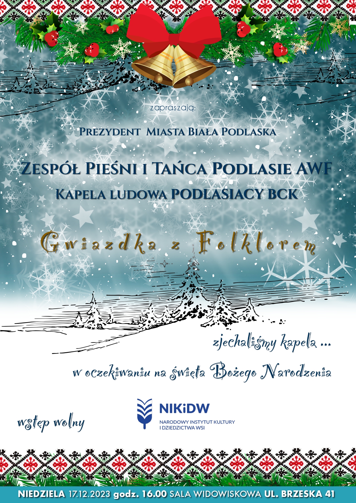 17 grudnia w sali widowiskowej na ul. Brzeskiej 41 w Białej Podlaskiej, odbędzie się Gwiazdka z Folklorem.