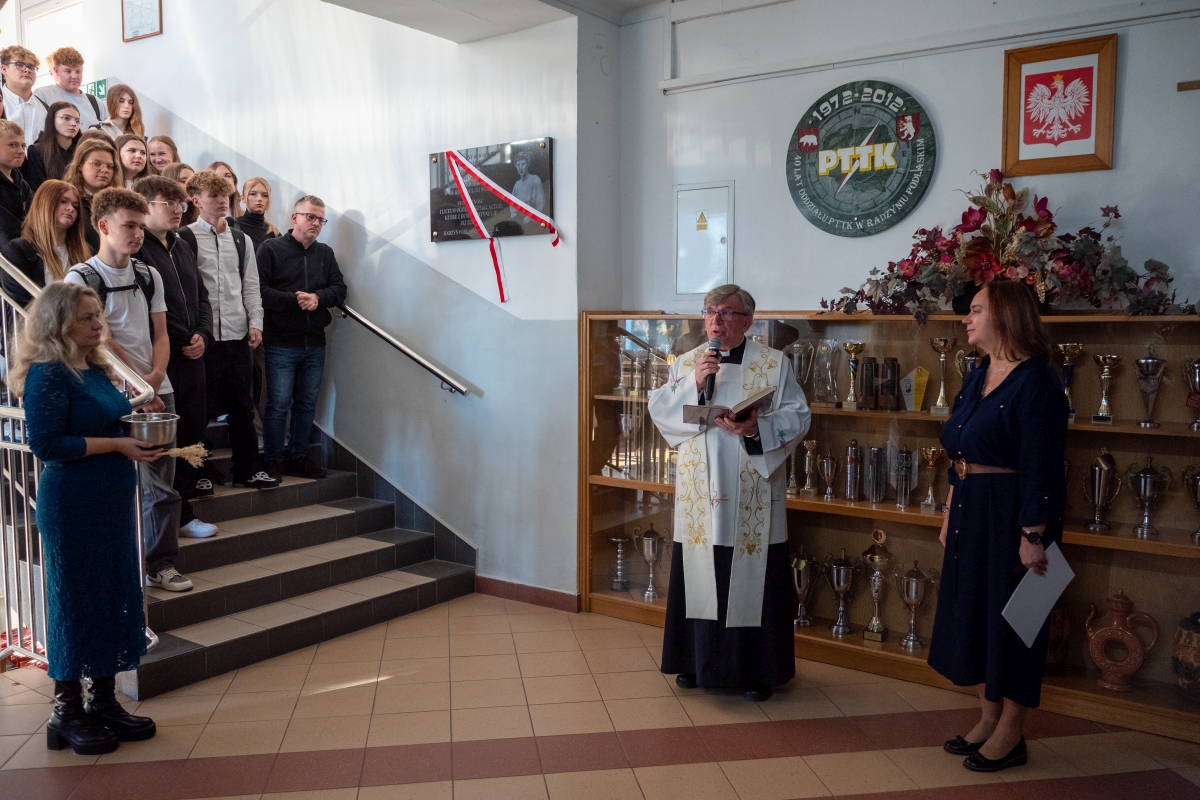 Po zakończeniu wykładu odbyło się poświęcenie i odsłonięcie tablicy pamiątkowej w holu głównym szkoły. Obrzędu poświęcenia dokonał ks. kan. Krzysztof Pawelec, natomiast tablicę odsłonili wspólnie: Ewa Grodzka, Anna Szkutnik, Ewa Szabrańska, Jerzy Woźniak oraz Robert Mazurek.