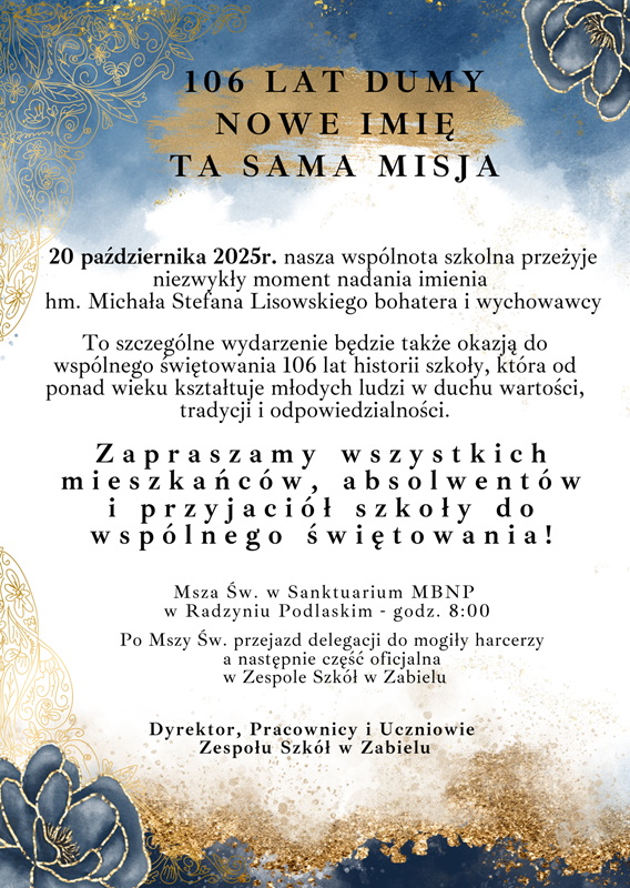 Nauczyciel wychowania fizycznego, harcmistrz ZHP, krajoznawca oraz działacz konspiracyjny - Michał Lisowski zostanie upamiętniony w Gminie Radzyń Podlaski. 20 października odbędą się wyjątkowe uroczystości związane z 106-leciem Szkoły Podstawowej w Zabielu, koło Radzynia Podlaskiego. W ramach obchodów szkoła uroczyście otrzyma imię harcmistrza Michała Stefana Lisowskiego oraz sztandar.